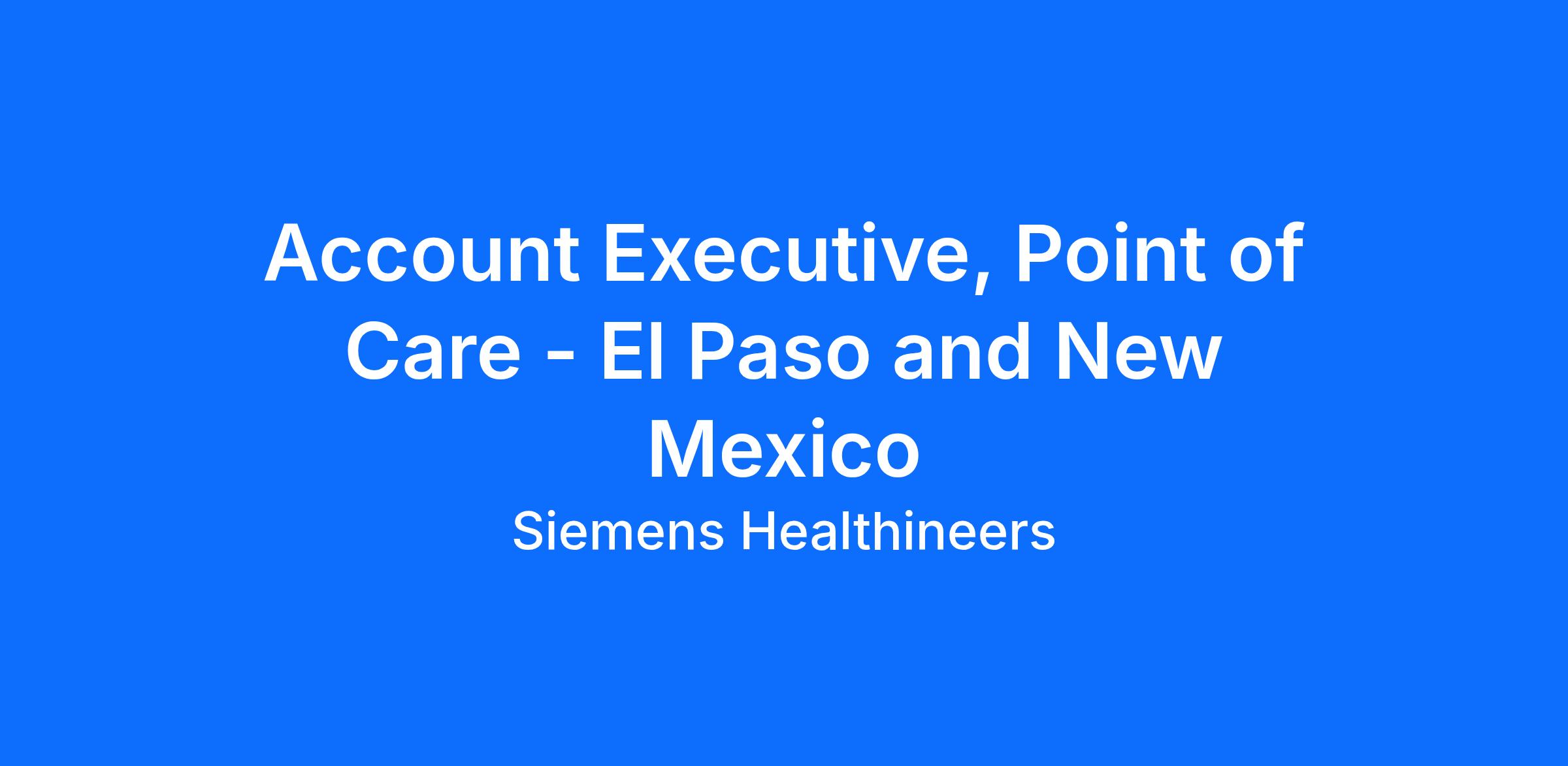 The Account Executive, Point of Care manages a territory offering Siemen’s Diagnostic Point of Care (POC) products, services, and solutions to new or existing hospital or hospital owned/operated customers directly and through channel partners. Territory - New Mexico and El Paso, TX areaYour role: