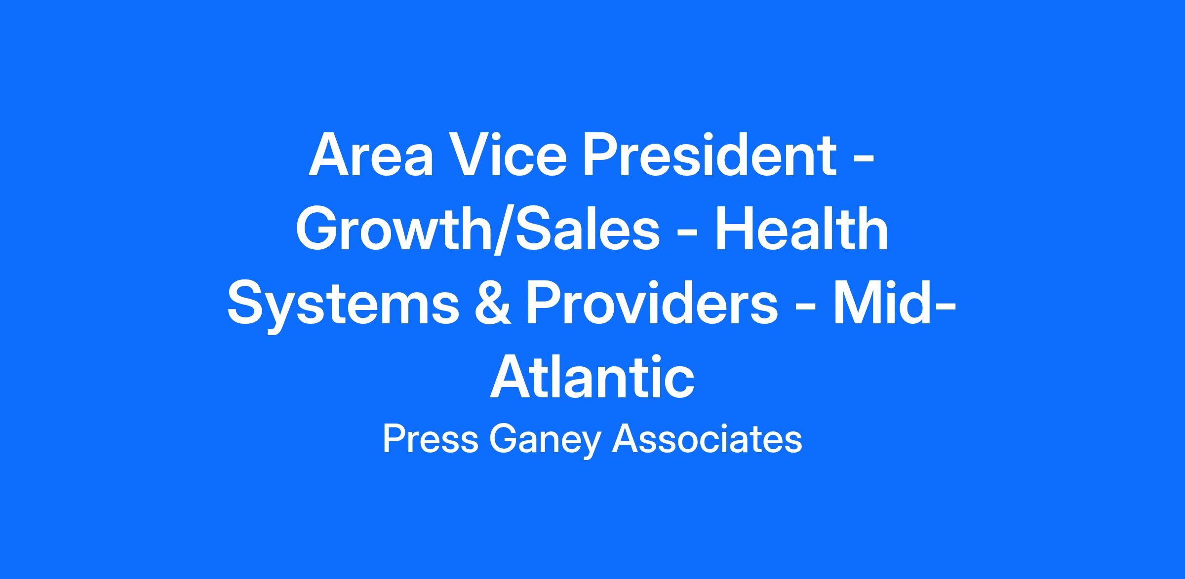 The Area Vice President's primary responsibility is to retain assigned health system and provider clients (based in VA, DE, MD, and PA) by securing long term renewals of existing contracts, as well as growing revenue by selling Press Ganey solutions to the clients.