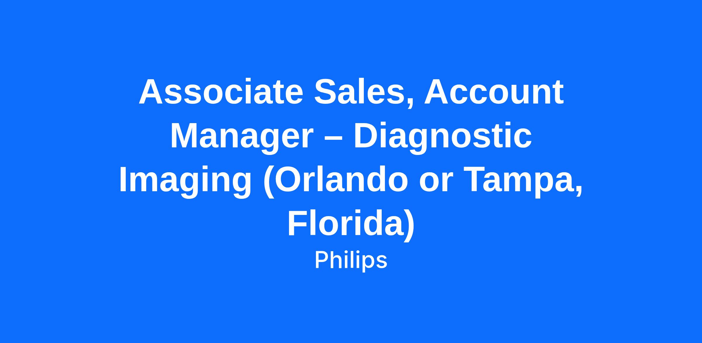Associate Sales, Account Manager-Diagnostic Imaging (Orlando or Jacksonville, Florida)