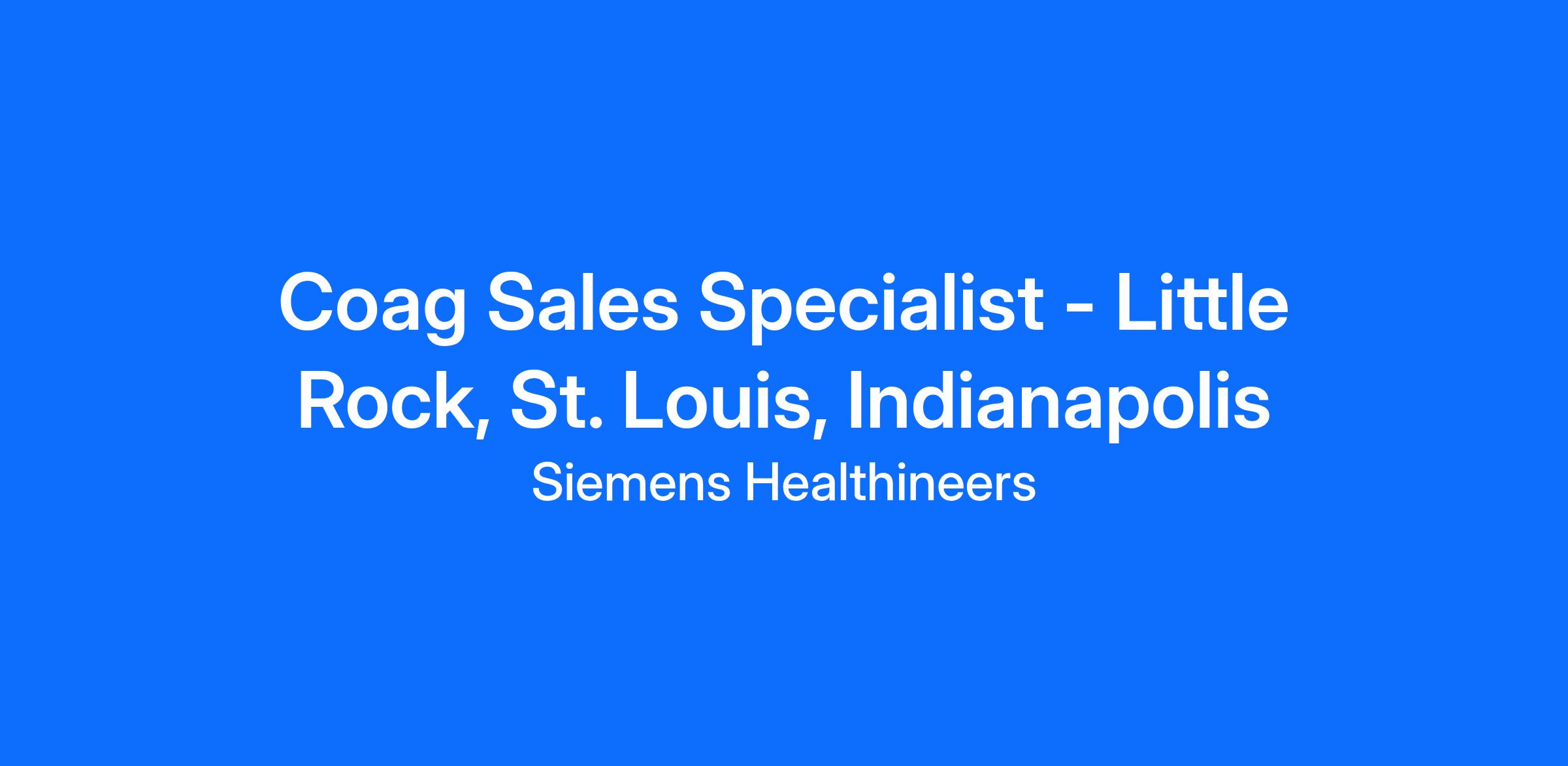 The position of Coag Sales Specialist drives instrument capital and reagent, consumable sales in the Coagulation product lines. Territory covers Little Rock, Indianapolis and St. Louis areas.Your role: