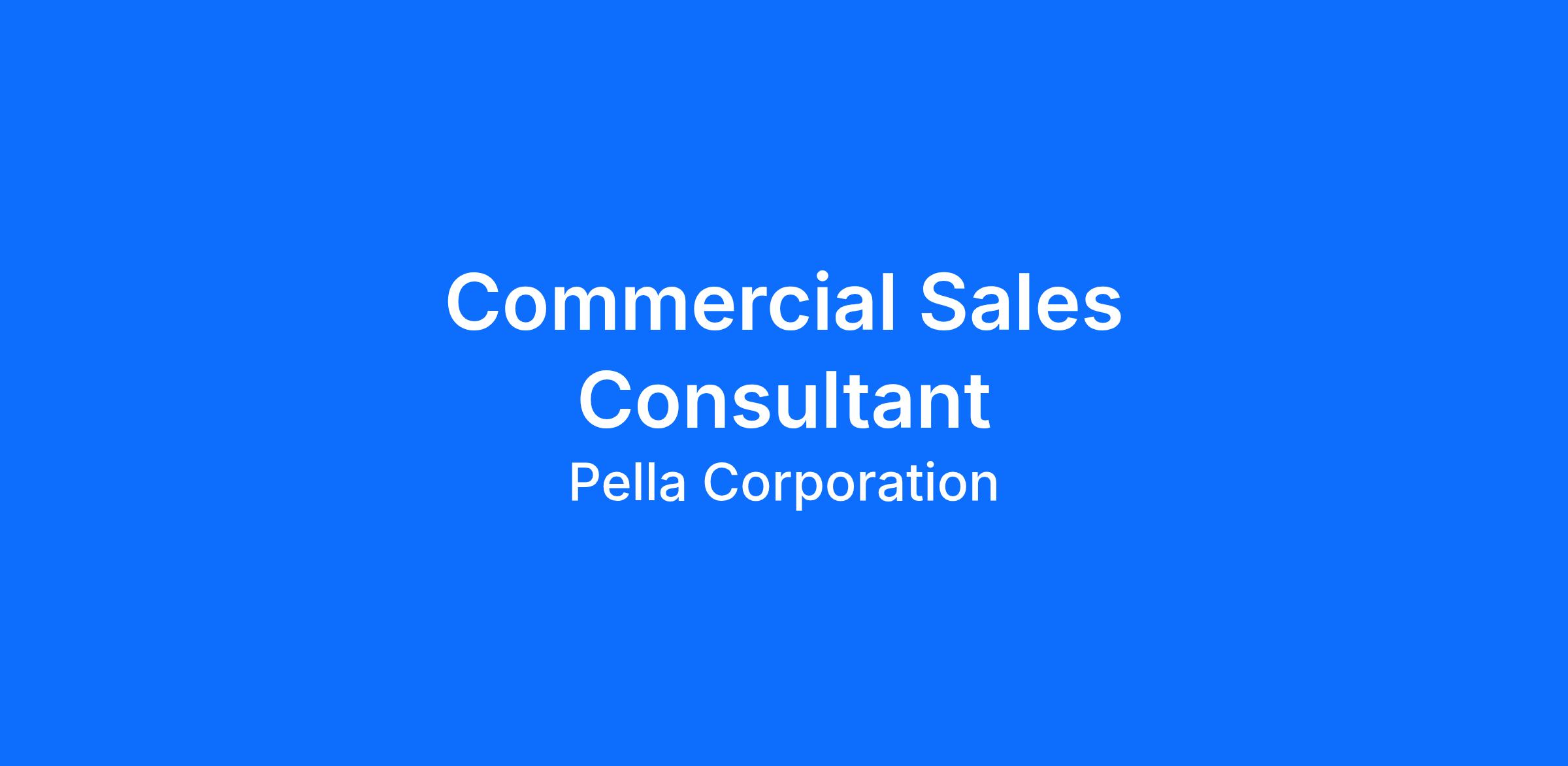 The Commercial Sales Consultant is responsible for building the Pella brand within the commercial industry as their premier choice for window and door solutions. Achieve individual sales goals through a confident presentation of unique perspectives on how their customers can grow their business using Pella product offerings. Provide profitable market solutions, technical expertise, and partnership by understanding customer needs and developing business-partner relationships with architects, builders, contractors, and commercial organizations. Proactively originates new customer relationships through networking, referrals and face-to-face meetings. Help customers grow their business and offer a single point of contact for their ongoing needs. Commercial Sales Consultants spend a minimum of 60% of their time in the field at customer sites generating account growth with planned quality meetings, as well as prospecting to develop new business.