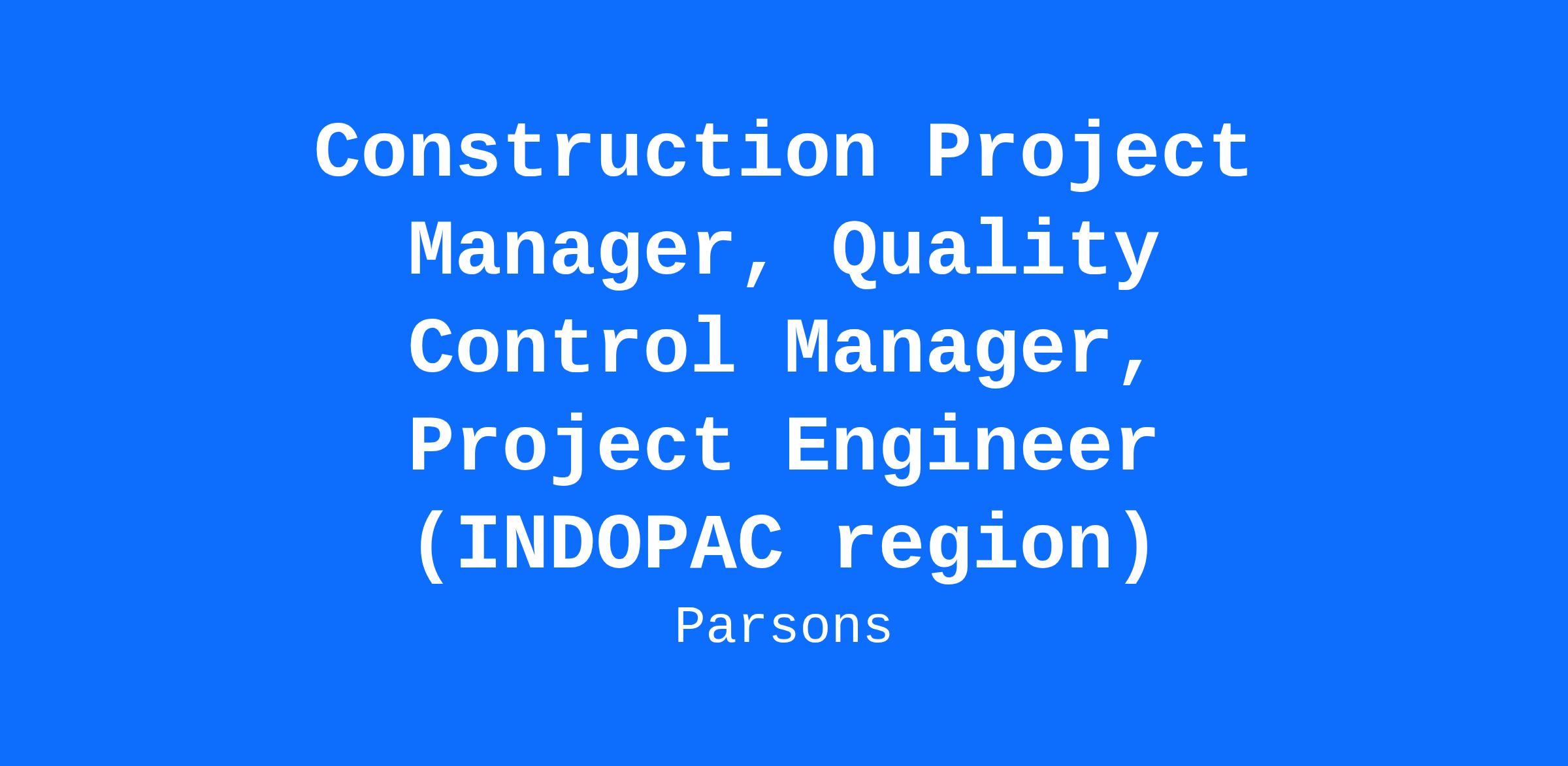 Parsons is looking for amazingly talented Construction personnel for our expanding INDOPAC region business to join our team and grow your career!