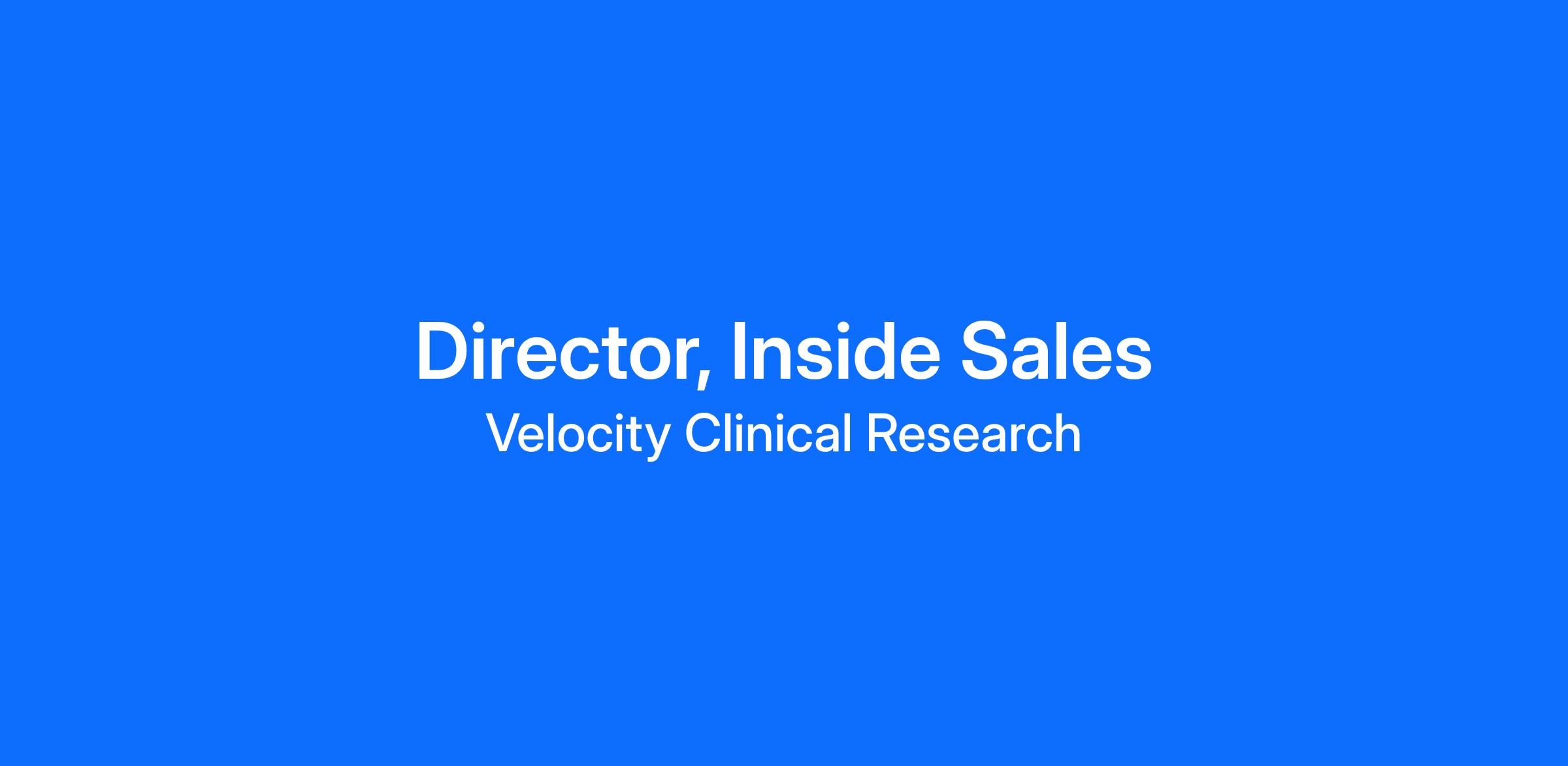 At Velocity, we are seeking a Director of Inside Sales who will lead the development and execution of thoughtful, effective inside sales strategies to identify, qualify, and cultivate partnerships with CROs, pharmaceutical companies, and biotech organizations, working closely with field sales, site leadership, and cross‑functional teams to ensure a clear and consistent experience for potential partners.