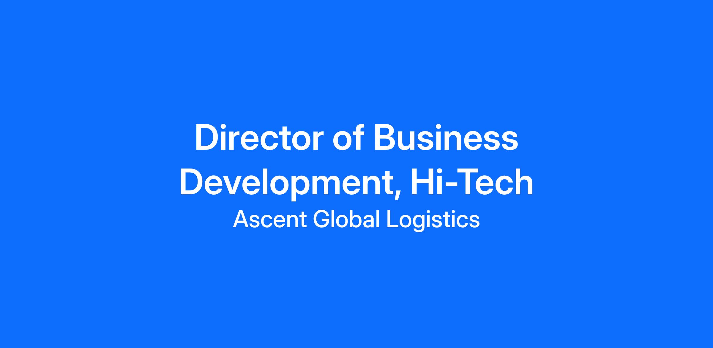 As our Director of Business Development – Hi-Tech, you will drive the expansion of Ascent’s Time-Critical Logistics solutions within the high-tech sector. Your mission is to identify, develop, and secure strategic partnerships with companies across the technology ecosystem, including semiconductor manufacturers, electronics OEMs, data center operators, and other critical infrastructure providers. By leveraging Ascent’s specialized capabilities in rapid response, end-to-end visibility, and global express transport, you will play a pivotal role in scaling our presence across mission-critical supply chains where precision, speed, and reliability are non-negotiable.