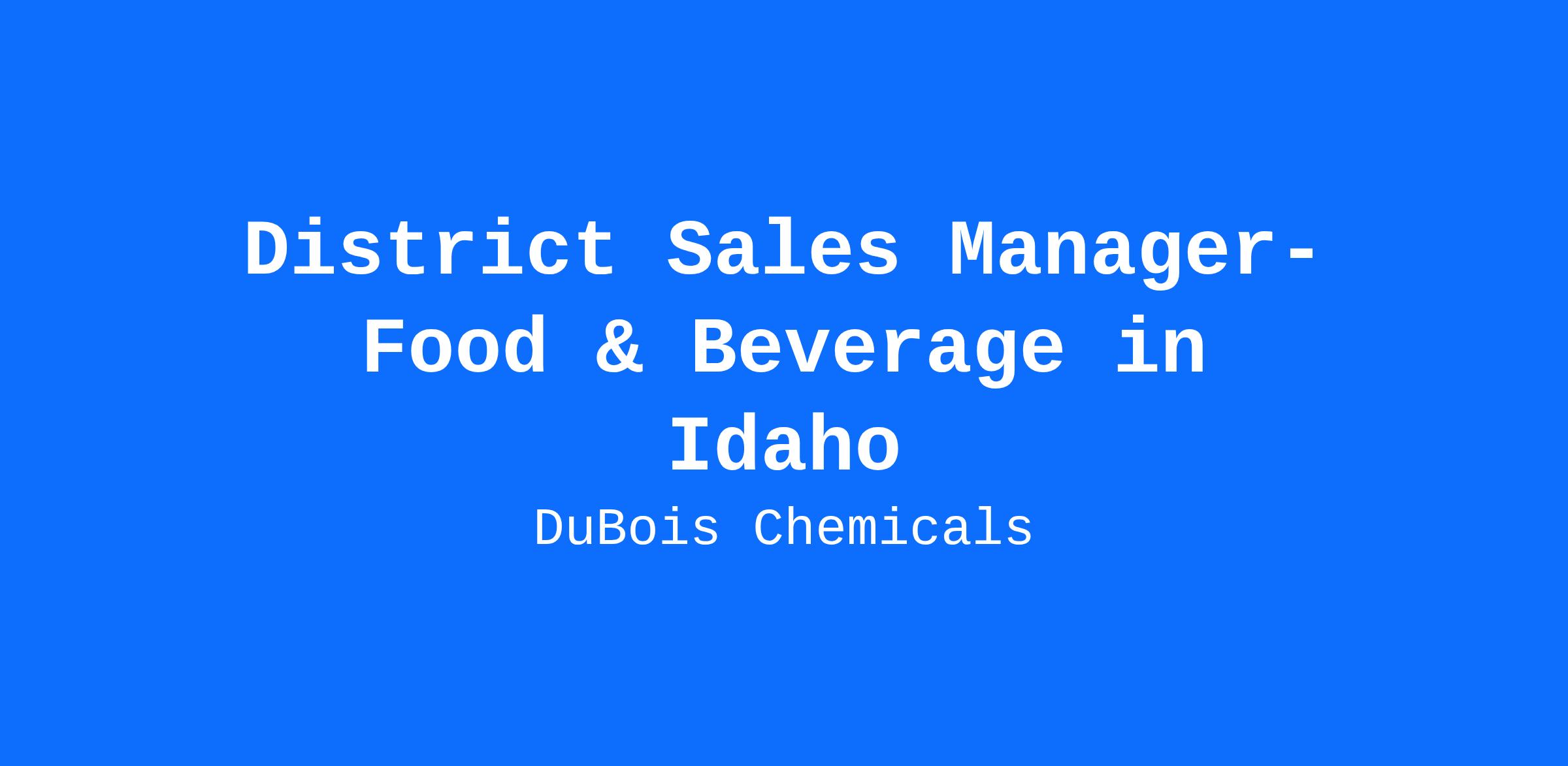 DuBois Chemicals is looking to hire a high-achieving food and beverage sales professional to assume our Idaho food and beverage sales territory with excellent upside growth potential. Responsible for growing and maintaining our business in this region and is required to have a successful history of cold-calling, prospecting, and creating new business.