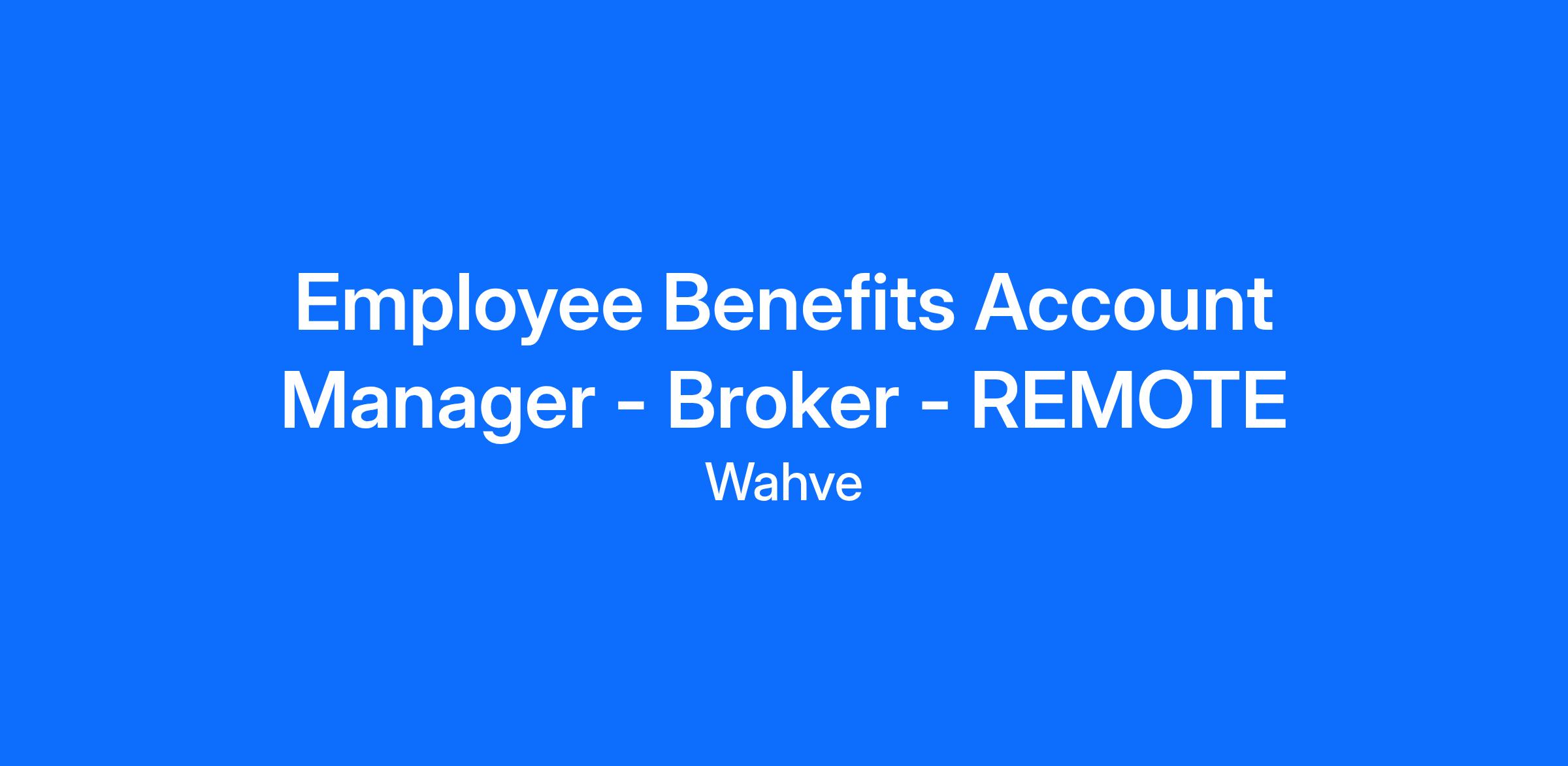Employee Benefits Account Manager - Broker - REMOTE