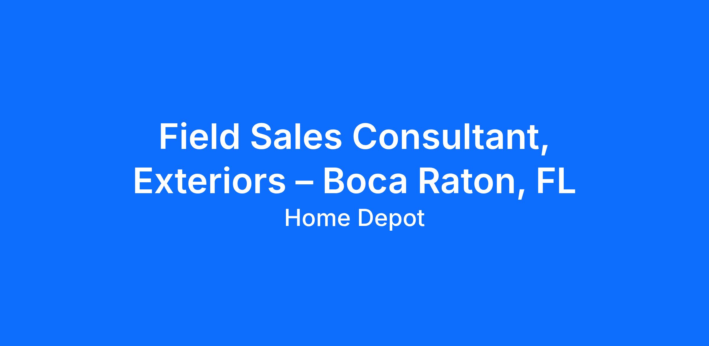 Field Sales Consultant, Exteriors – Boca Raton, FL