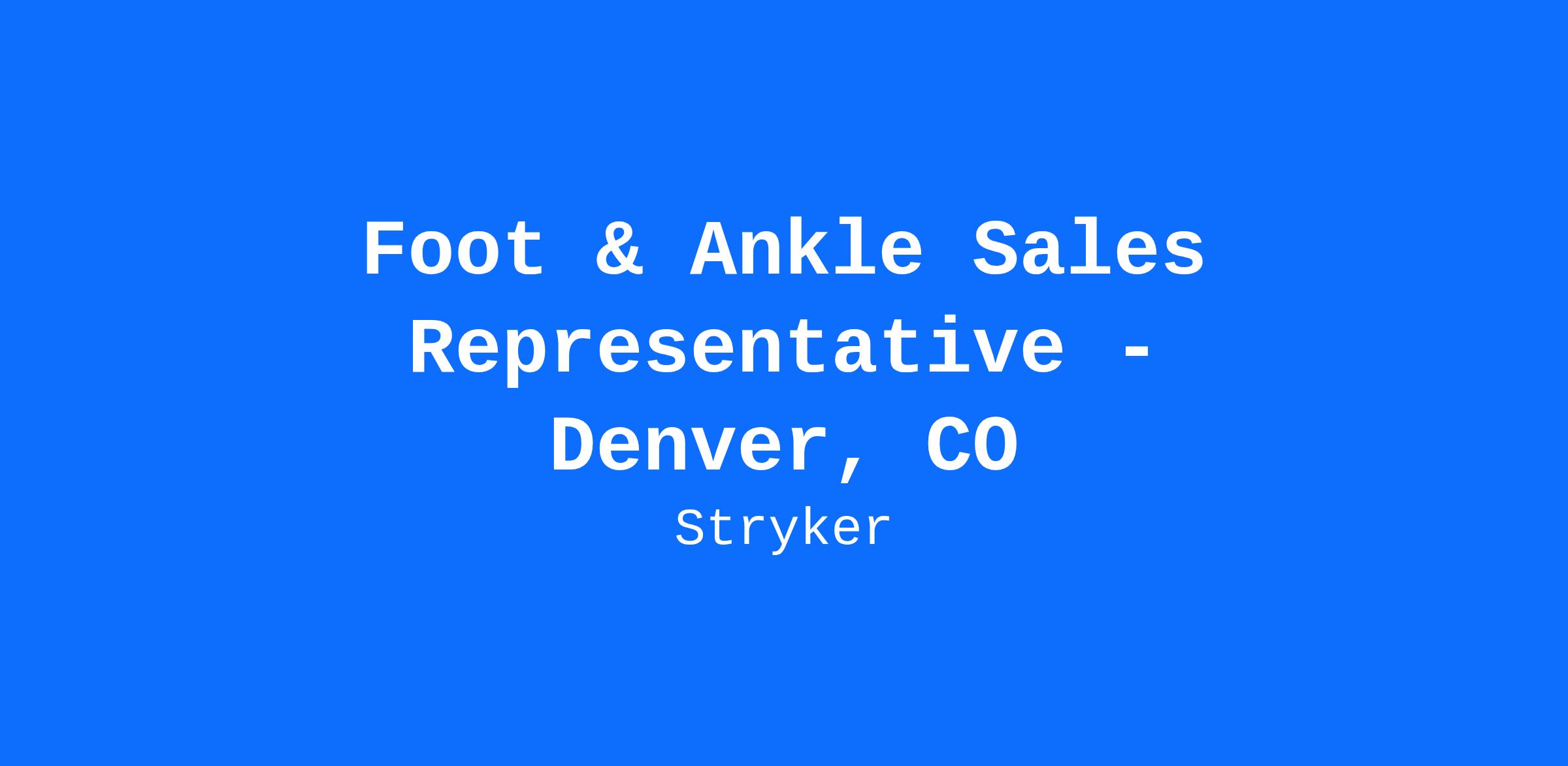 As a Foot & Ankle Sales Rep you love driving in the fast lane and live out your mission to change lives by selling Stryker products that are making healthcare better.