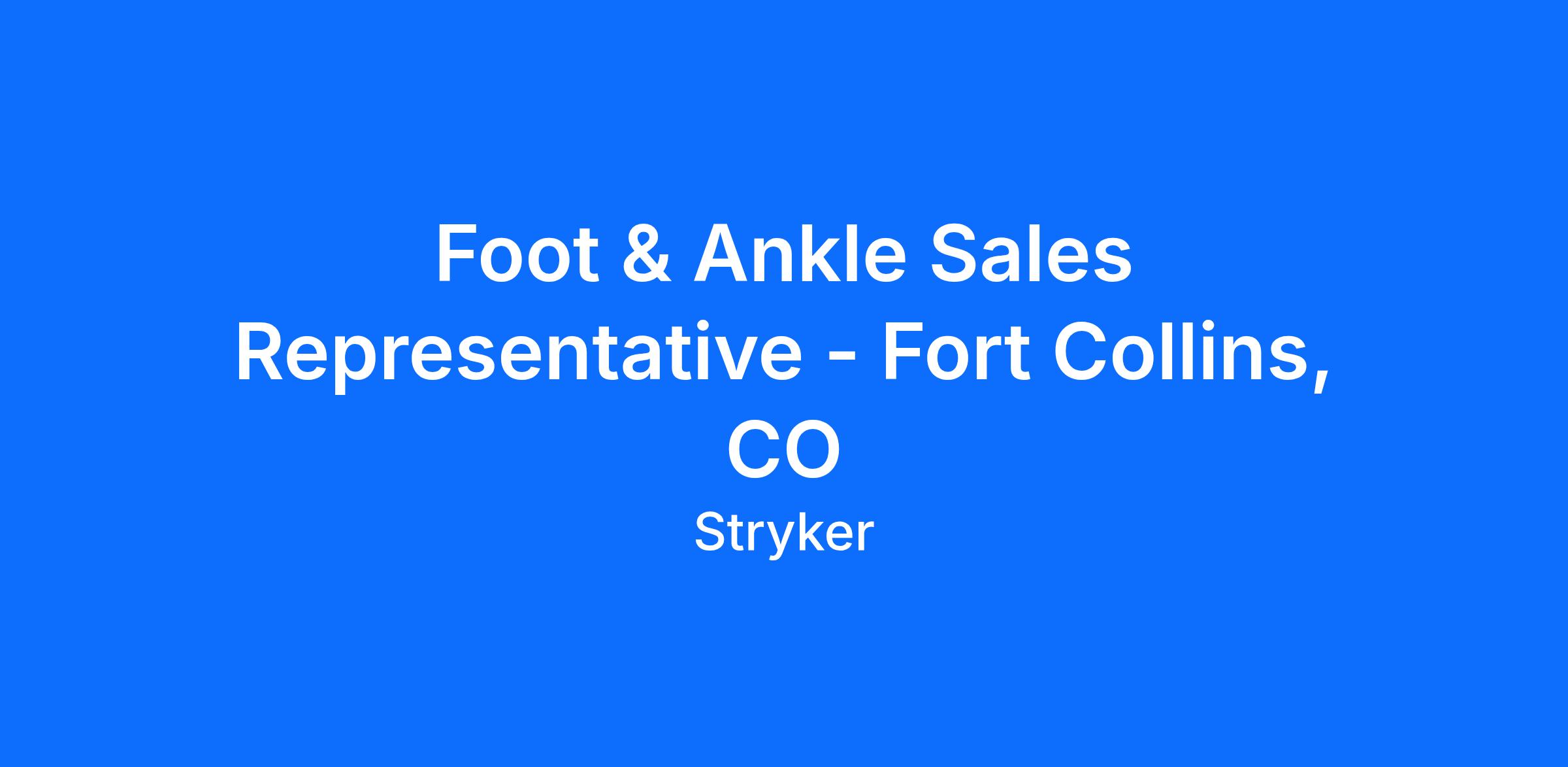 As a Foot & Ankle Sales Rep, you work with a high degree of intensity and commitment to sell Stryker Foot & Ankle products that meet our customers’ needs.