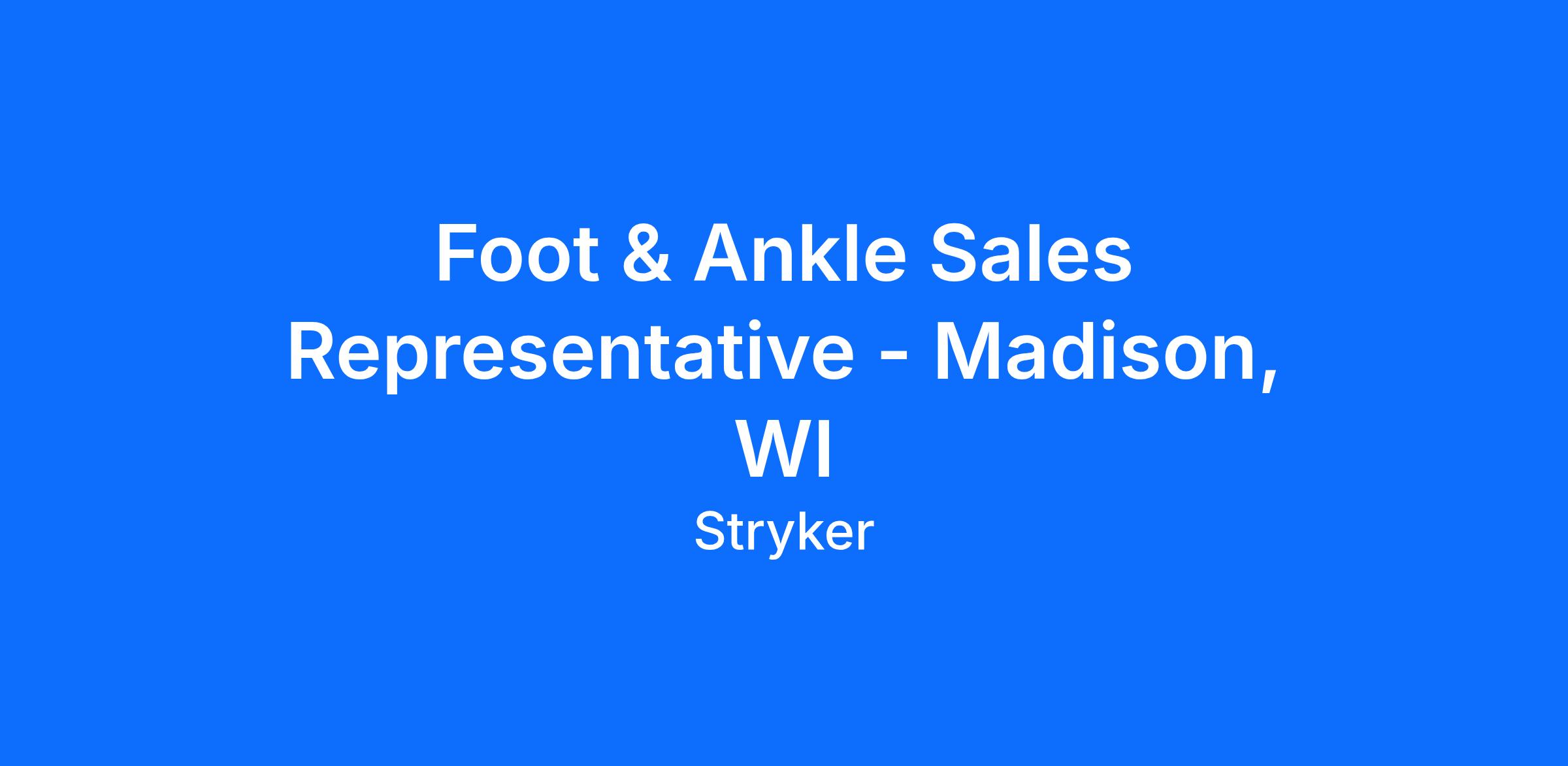 As a Foot & Ankle Sales Rep, you work with a high degree of intensity and commitment to sell Stryker Foot & Ankle products that meet our customers’ needs.