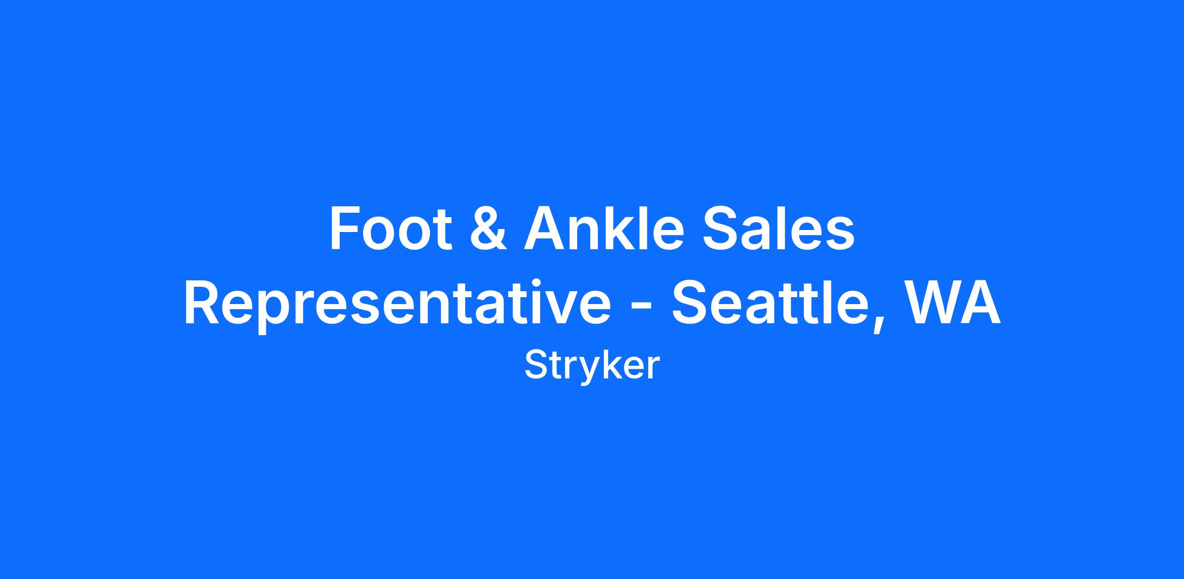 - As a Foot & Ankle Sales Rep, you work with a high degree of intensity and commitment to sell Stryker Foot & Ankle products that meet our customers’ needs.