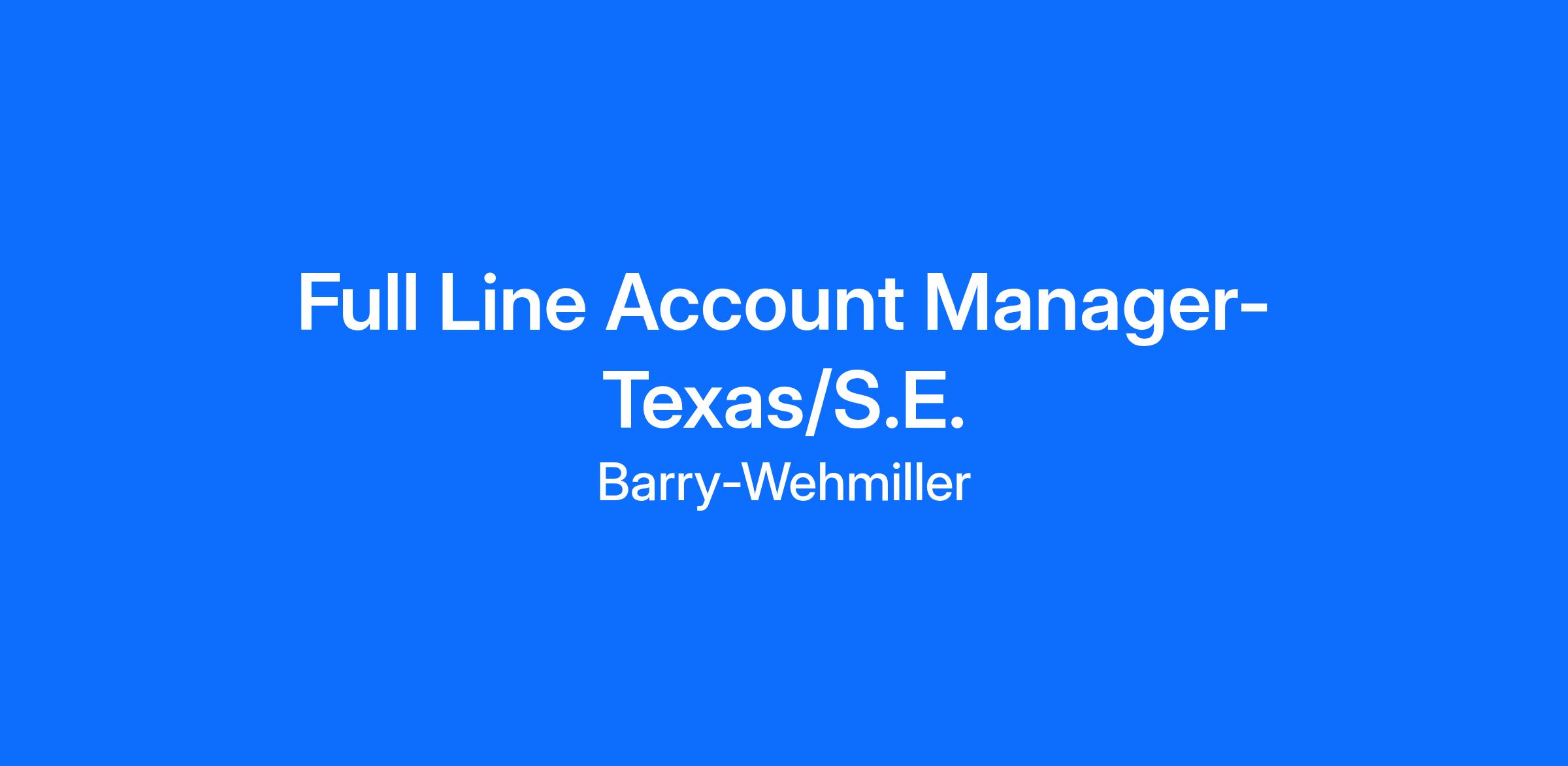 POSITION: Full Line Account Manager-Texas/S.E.