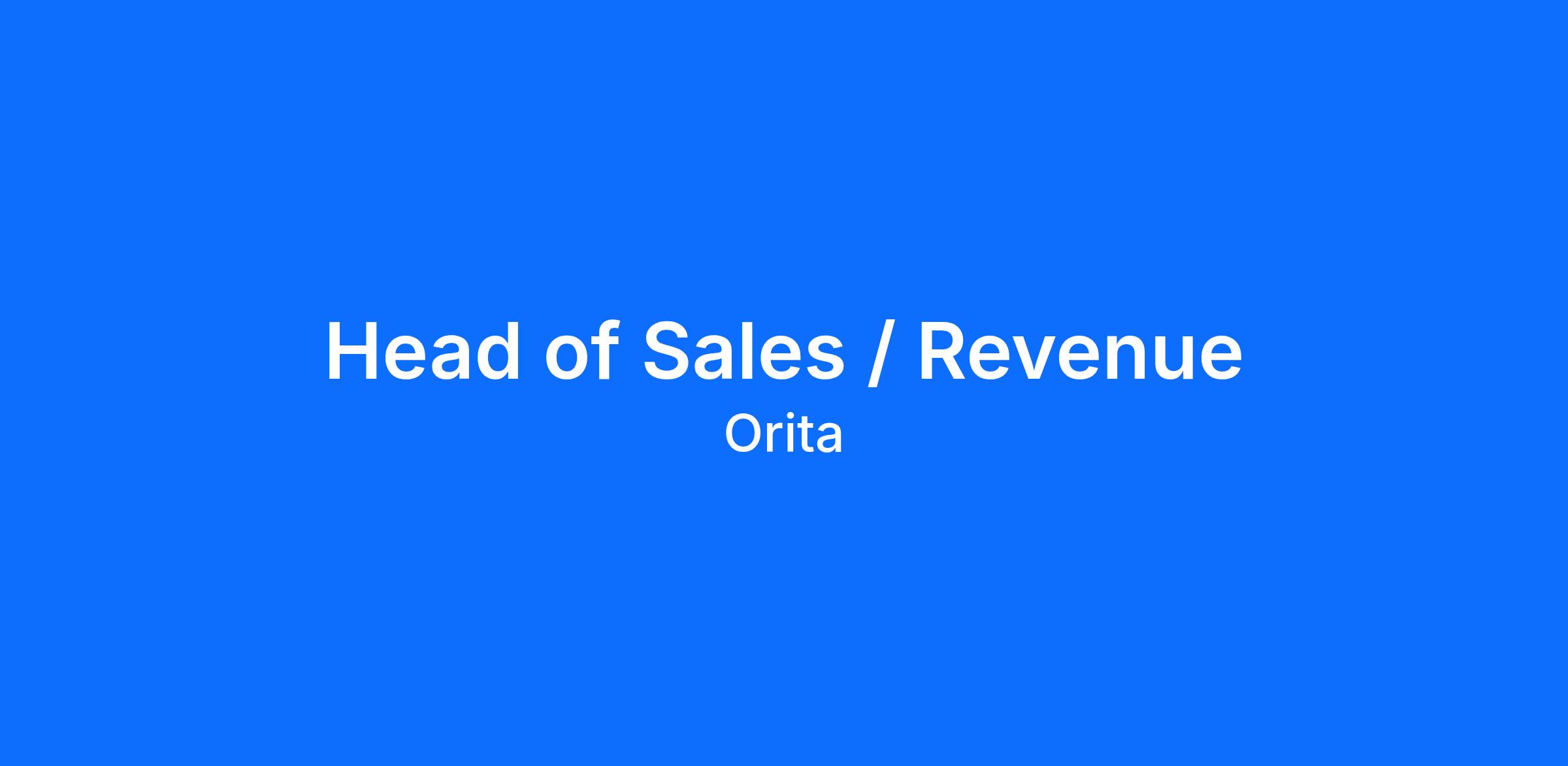 As Orita’s Head of Sales, you will