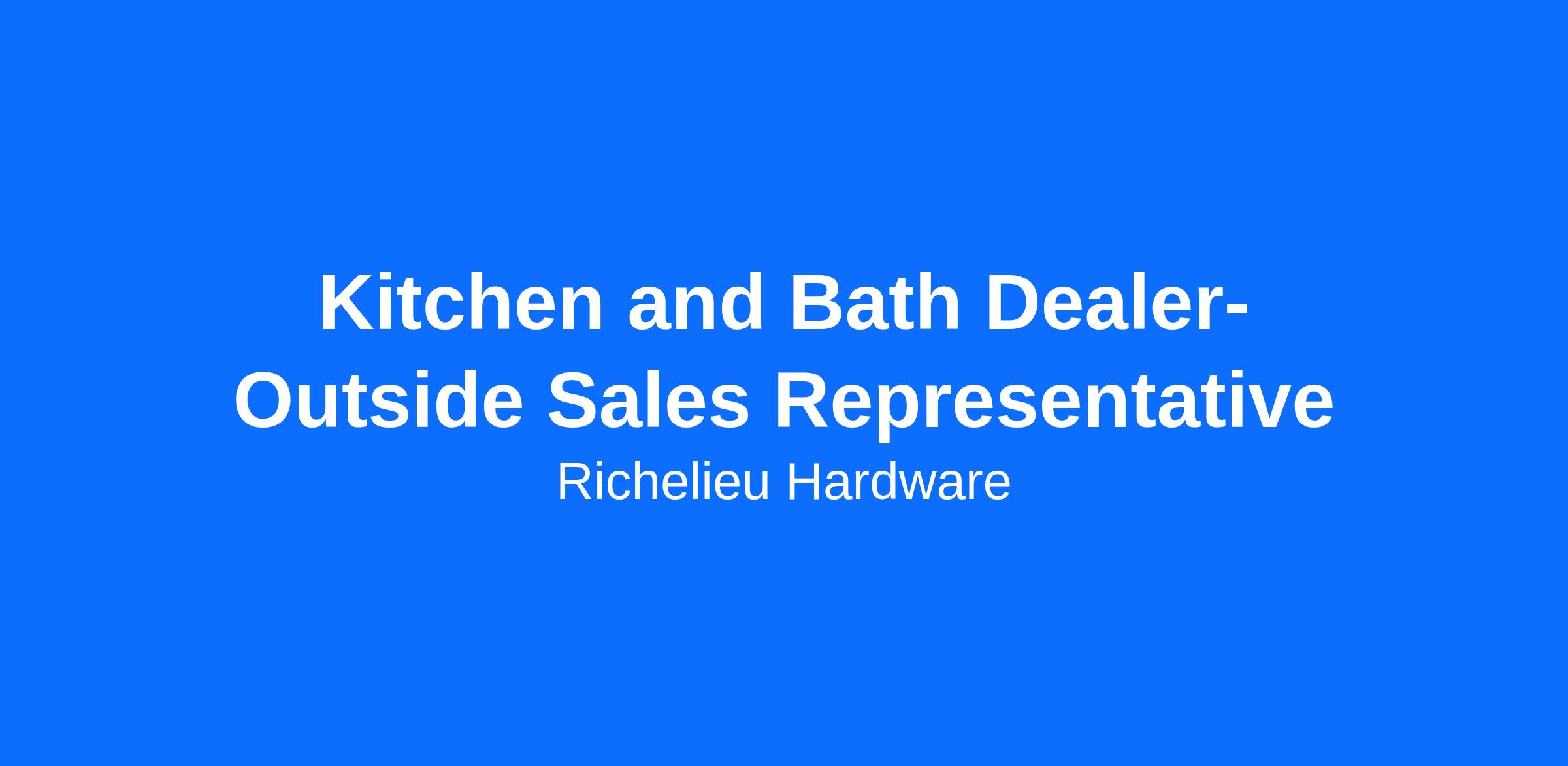 As a critical and meaningful role within the Richelieu organization, the Kitchen & Bath Dealer Sales Representative is responsible for the overall relationship and management of day-to-day sales activities towards Kitchen & Bath dealers in his/her provided territory. You will successfully manage the sales of Richelieu’s premium solutions through structured consultative sales discussions, ultimately serving as a business advisor towards your clients. By positioning yourself as an indispensable resource, you will enable your clients to solve problems and increase business results. In turn, you will be building a thriving business of your own.