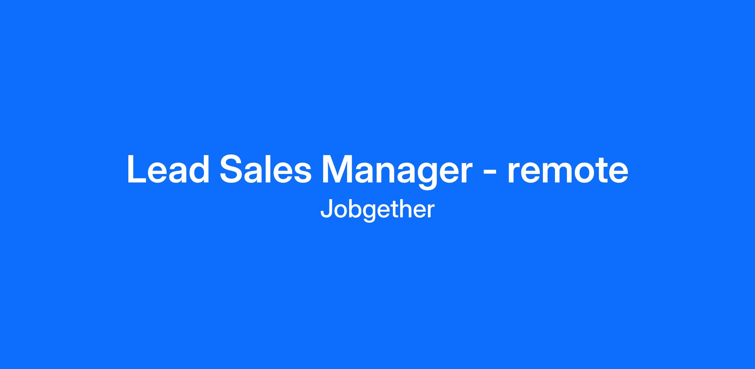 Lead Sales Manager - remote