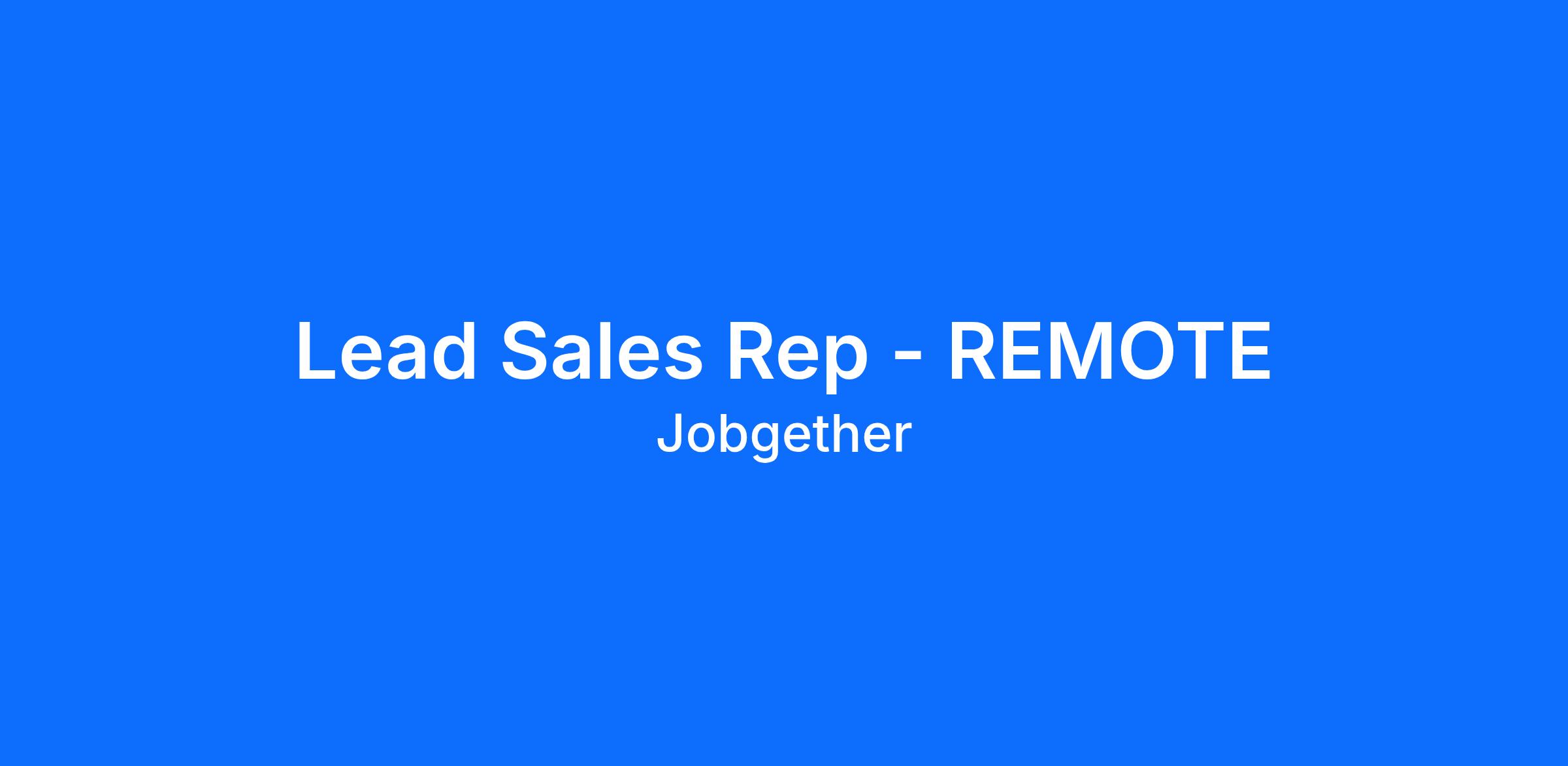 Lead Sales Rep - REMOTE