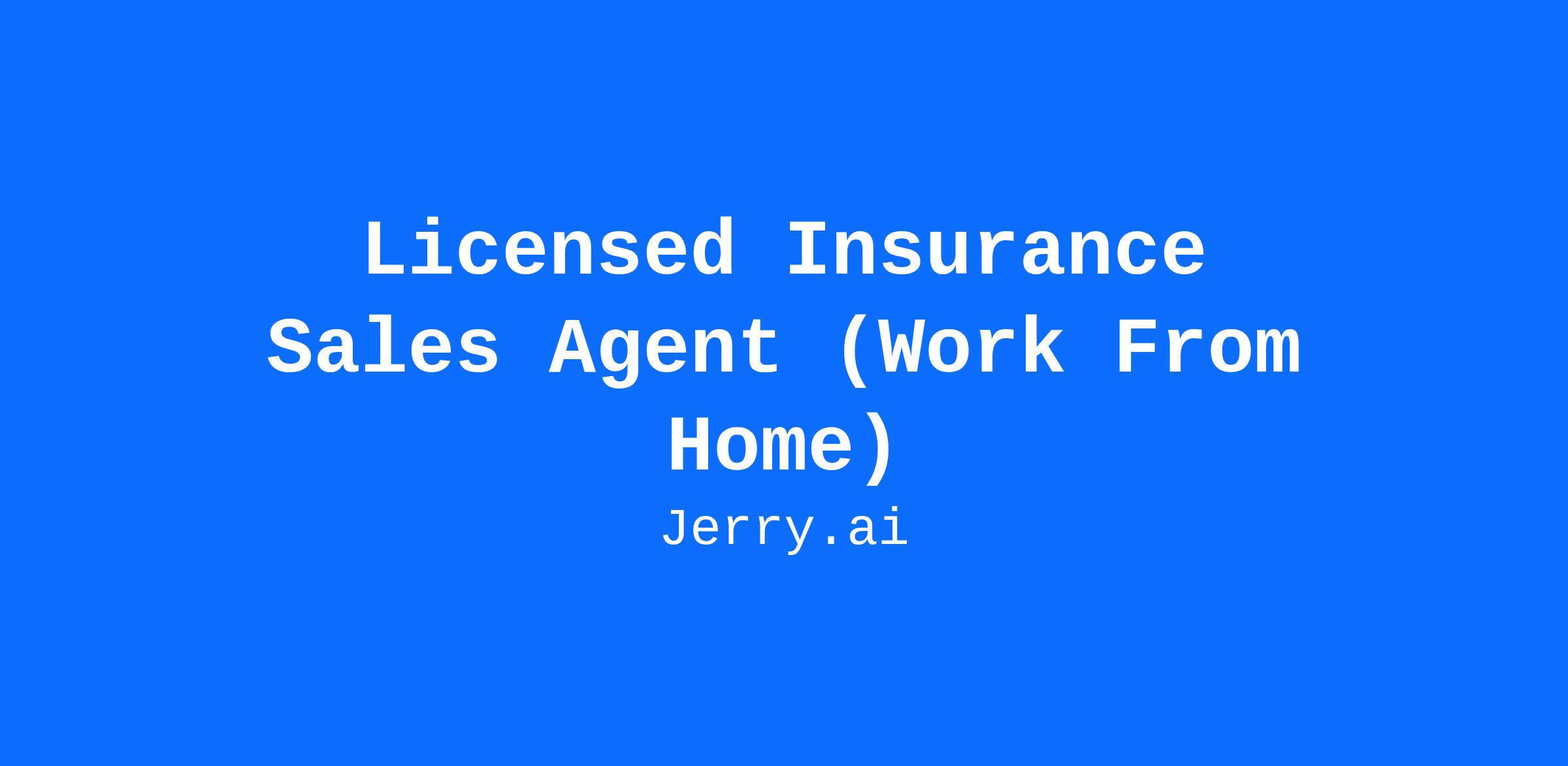 Licensed Insurance Sales Agent (Work From Home)