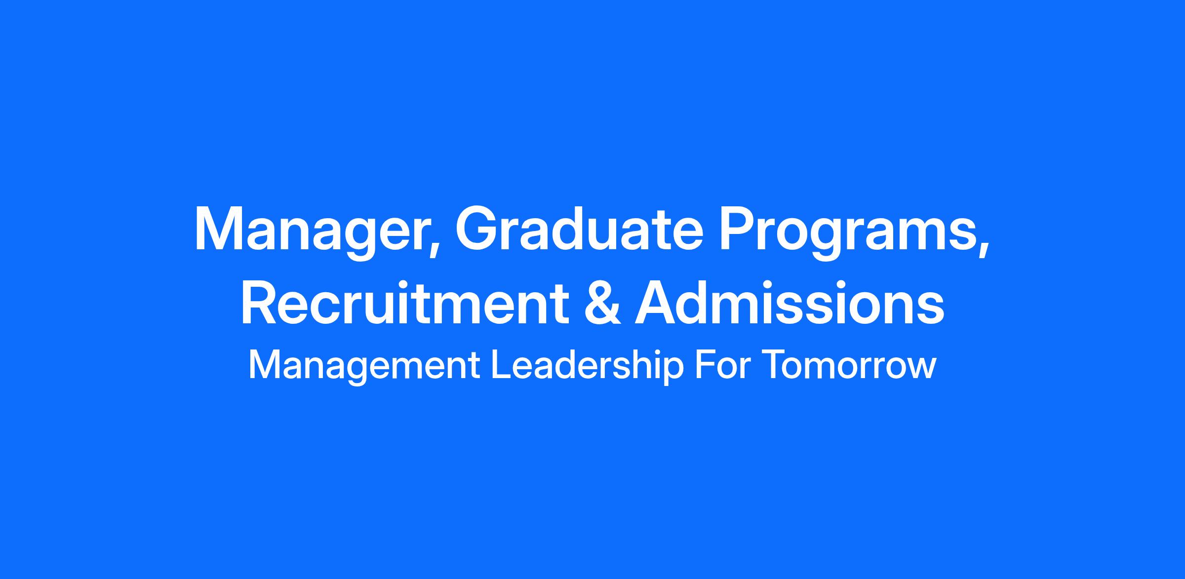 The Manager, Graduate Programs, Recruitment & Admissions is responsible for supporting the recruitment and admissions operations for MLT’s MBA Prep and MBA Professional Development (PD) programs. This role manages the day-to-day execution of outreach campaigns, application processing, data reporting, and candidate engagement—ensuring a seamless experience for prospective Fellows and supporting program goals around access, yield, and fit.