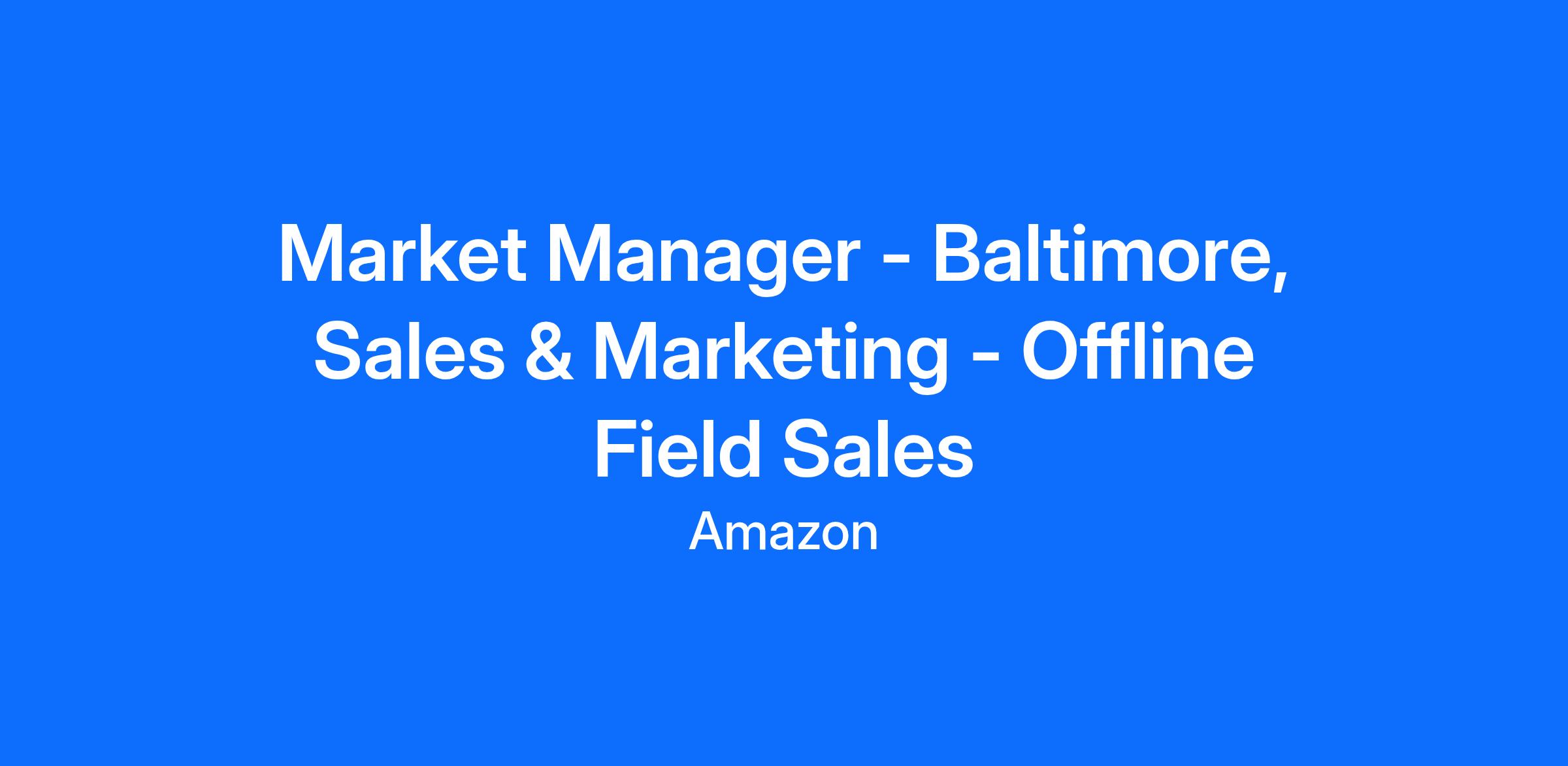The Amazon Offline Sales & Marketing team is responsible for selling Amazon devices into physical retailers across the United States and Canada. Market Managers lead sales and marketing initiatives for Amazon and its branded products in retail locations. They are responsible for the in-store experience, fostering relationships, training at the store/district level, and promoting Amazon and its brands through customer interactions. Market Managers are focused on increasing sales of Amazon and its branded products in retail stores and educating store associates and consumers on the value of Amazon devices, accessories and Amazon in general.