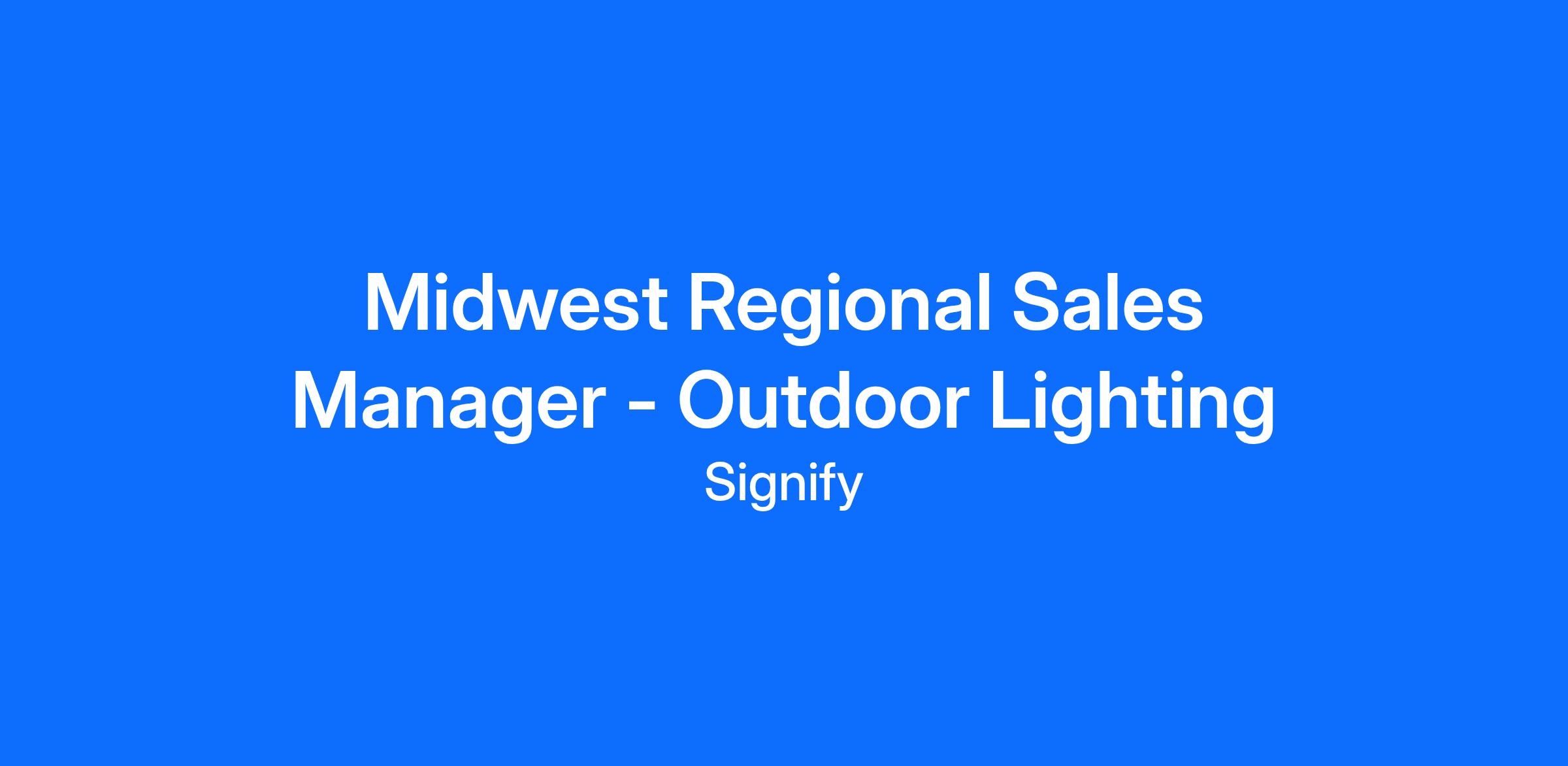 This is an exciting job opportunity for you to light the way as a Regional Sales Manager for Outdoor Lighting in the Midwest with Signify.