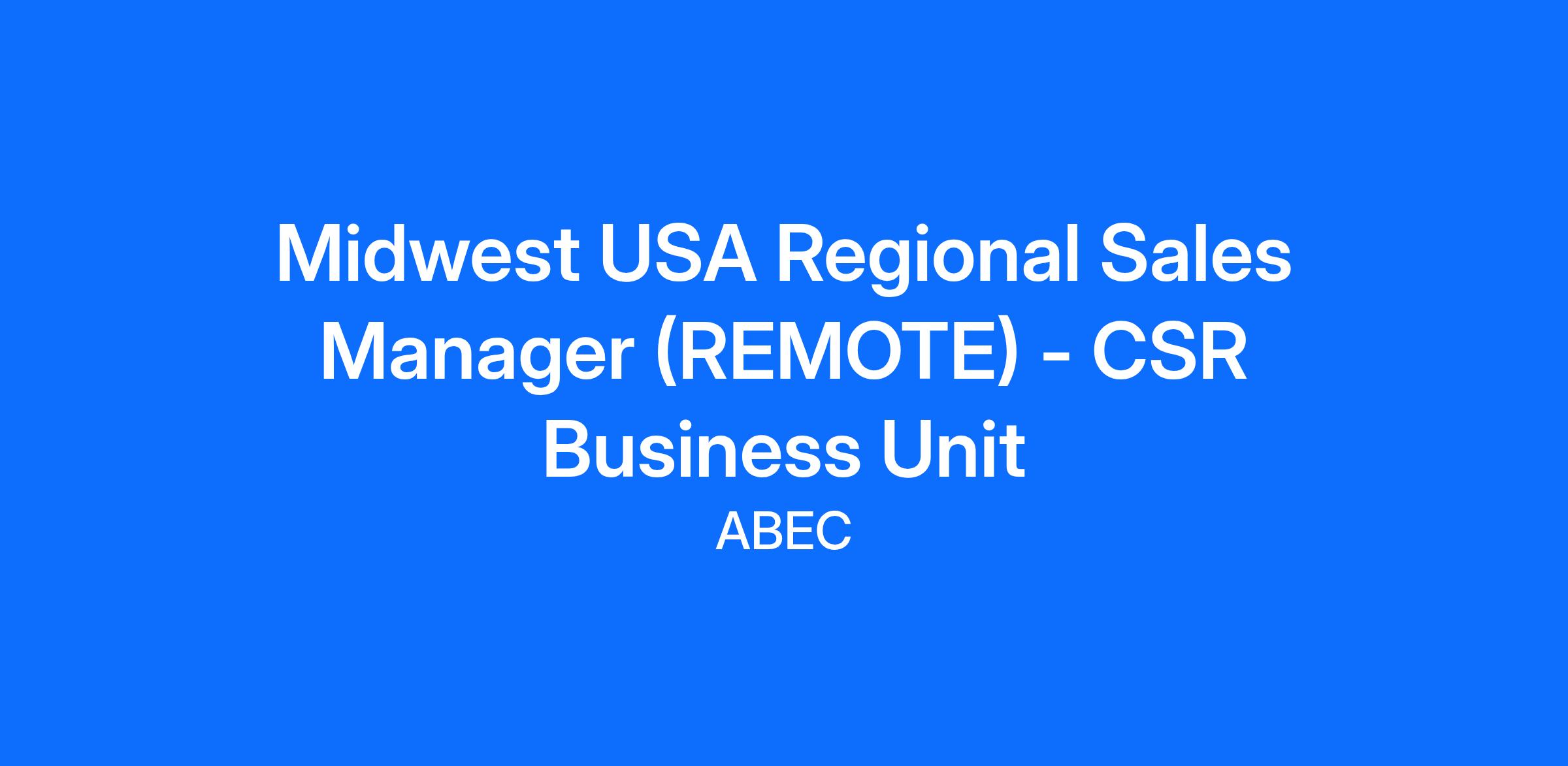 ABEC’s Headquarters in Bethlehem, PA serves a global market. To support our growth, ABEC is seeking a remote Regional Sales Manager who will be responsible for top-line sales growth in the CSR Business Unit.