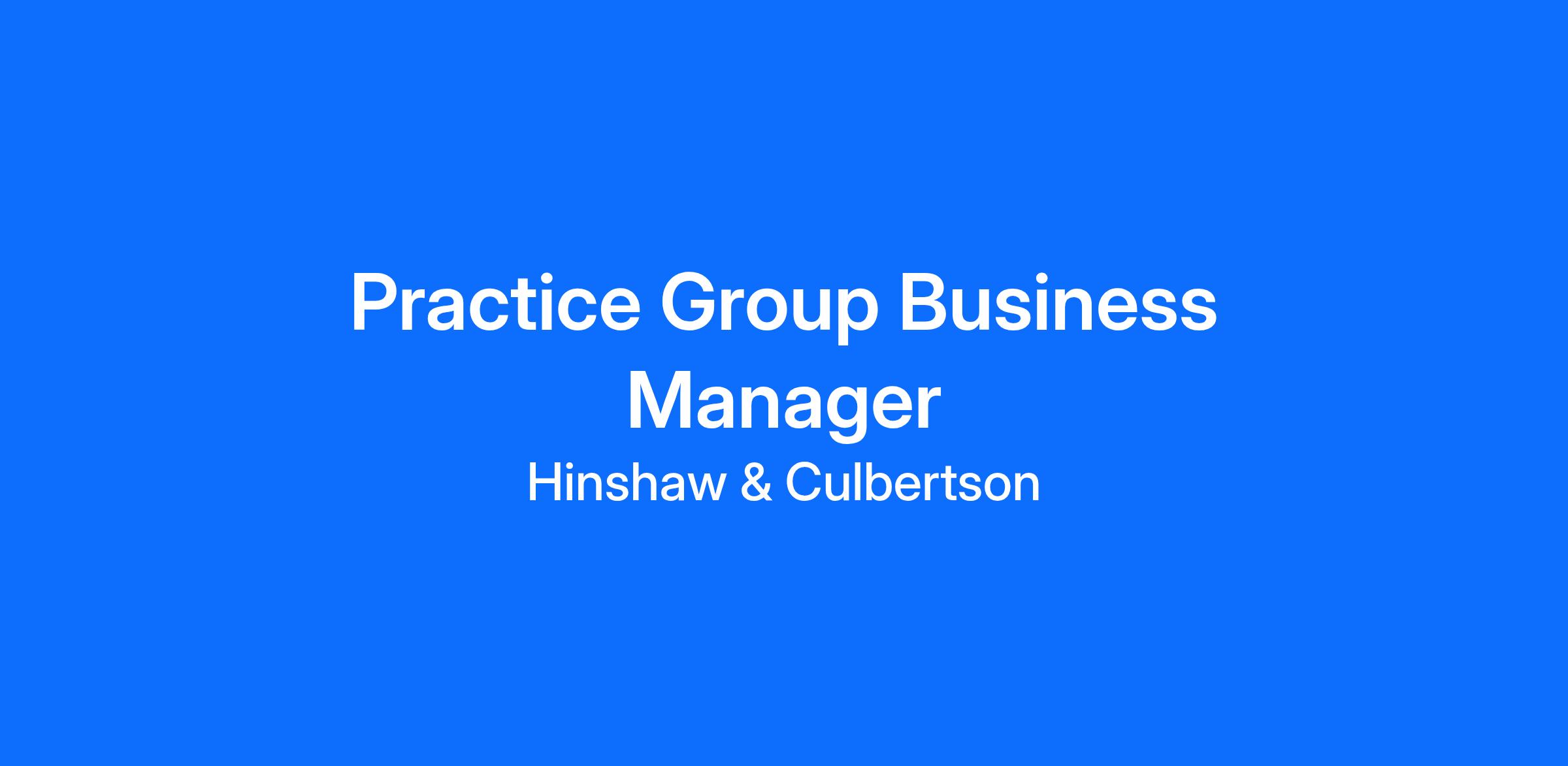 Hinshaw & Culbertson LLP, a national law firm, currently has an excellent full-time employment opportunity for a Practice Group Business Manager. We offer competitive compensation and an excellent benefits package plus a 35-hour work week.