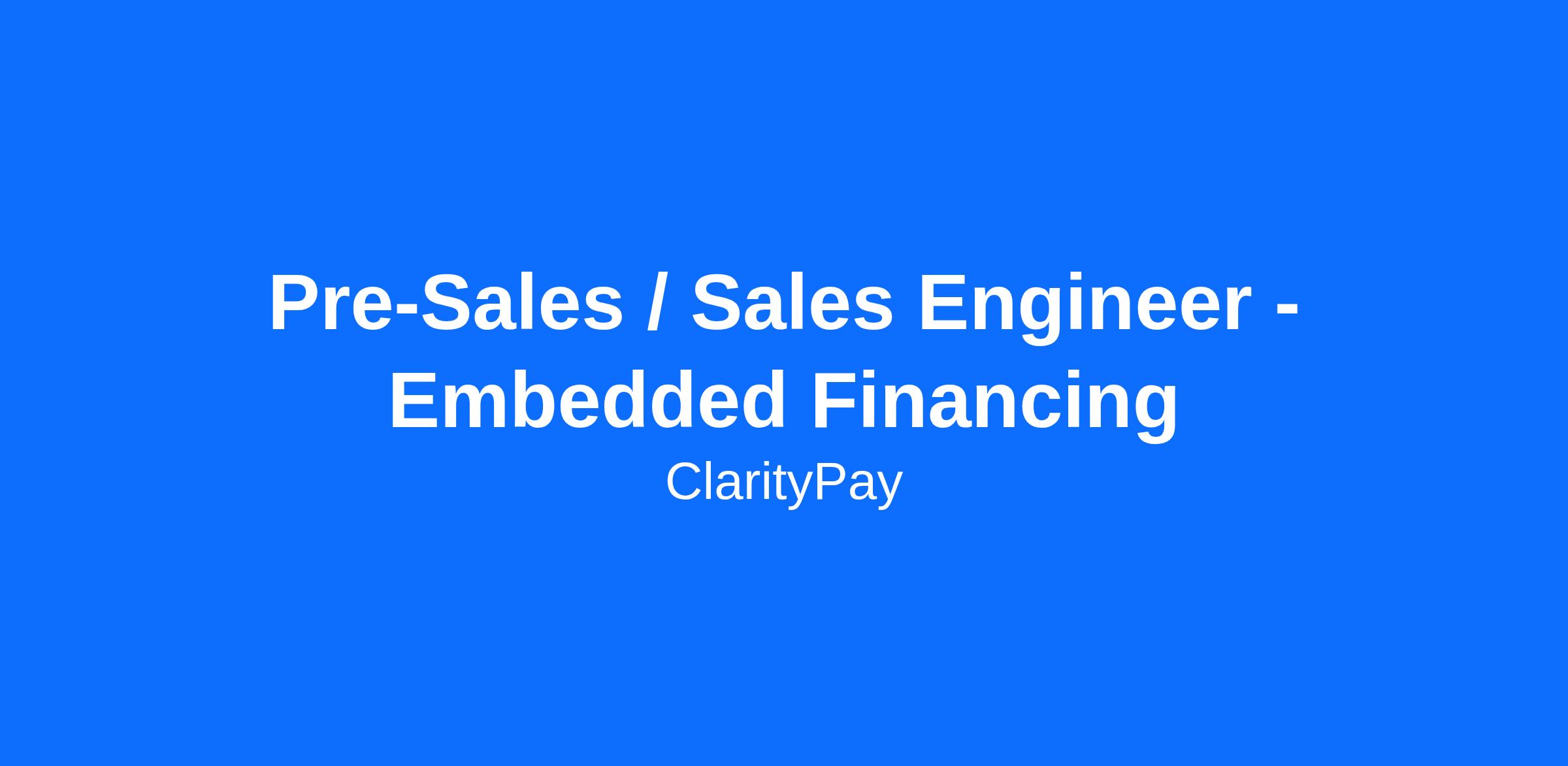 We are seeking a Pre-Sales / Sales Engineer to support the growth of our embedded financing platform by partnering closely with Sales, Product, and Engineering to help merchants and platform partners successfully evaluate and integrate our lending solution. This role sits on the lender side and serves as the technical and product expert during the pre-sales and early integration phases.