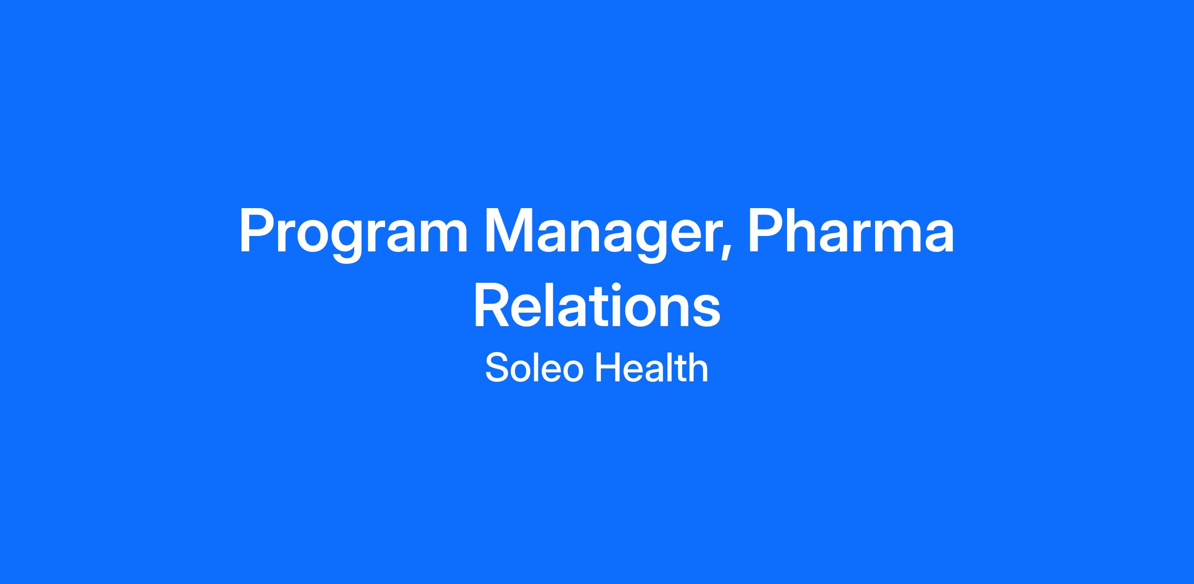 Soleo Health is seeking a Program Manager of Pharma Relations to lead key pharmaceutical partnerships and ensure seamless program delivery and success. Join us in Simplifying Complex care!