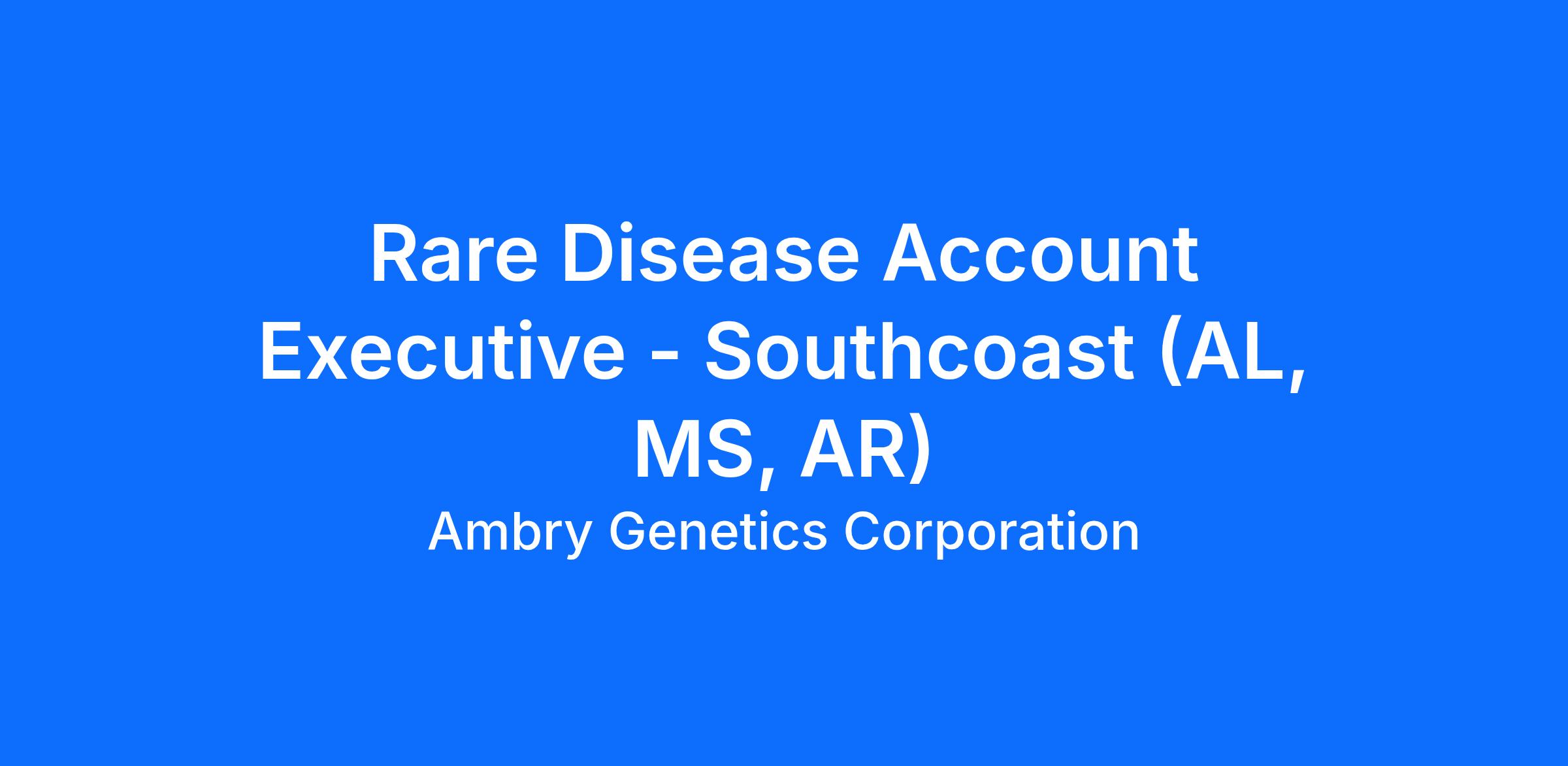 Rare Disease Account Executive - Southcoast territory (Alabama, Arkansas, Mississippi) : Must reside in the territory