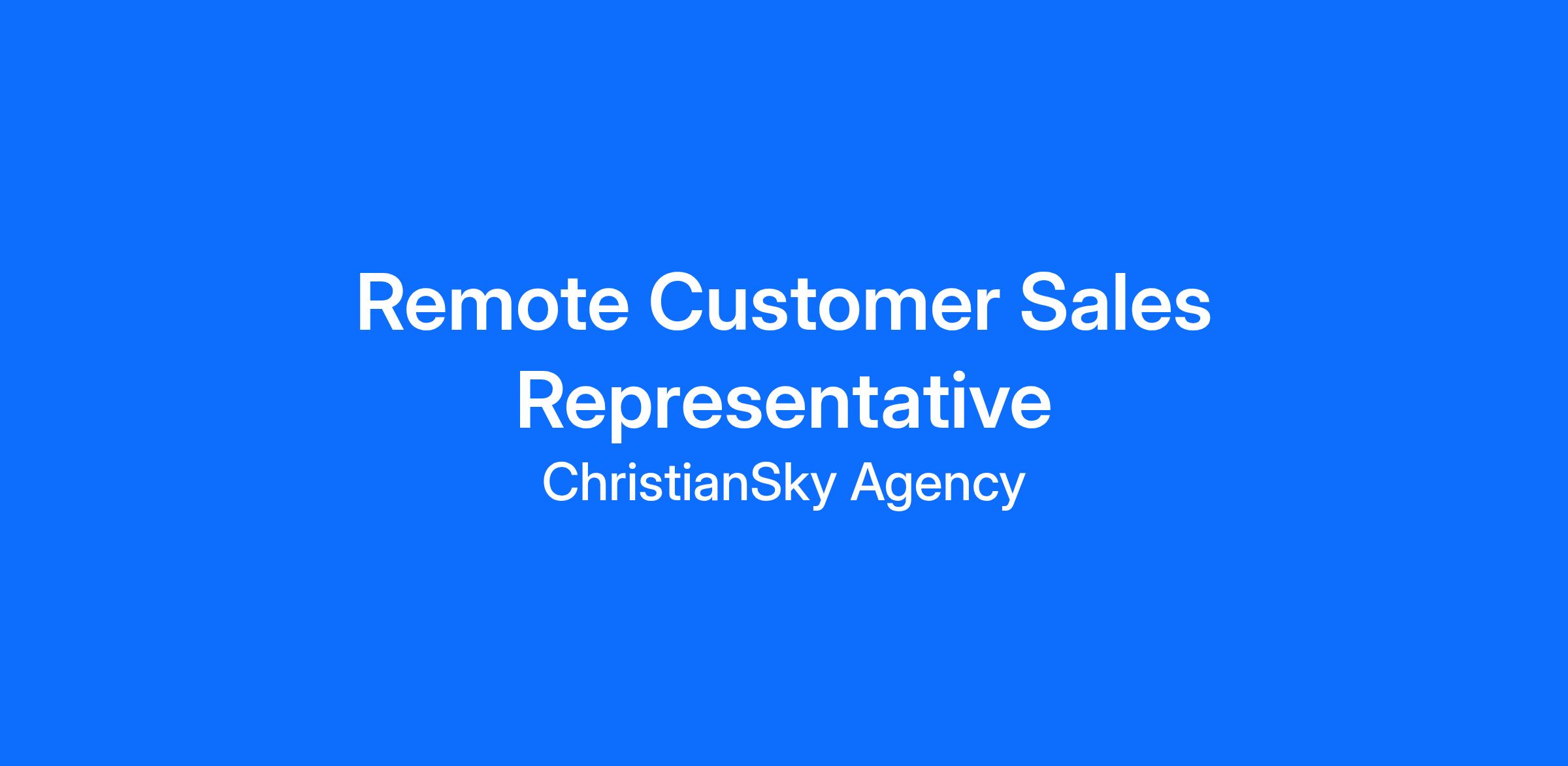 Launch your career with a purpose! ChristianSky Agency is looking for driven Remote Customer Sales Representatives to join our team. This is a unique work-from-home opportunity to build a rewarding career by helping clients secure their financial futures.