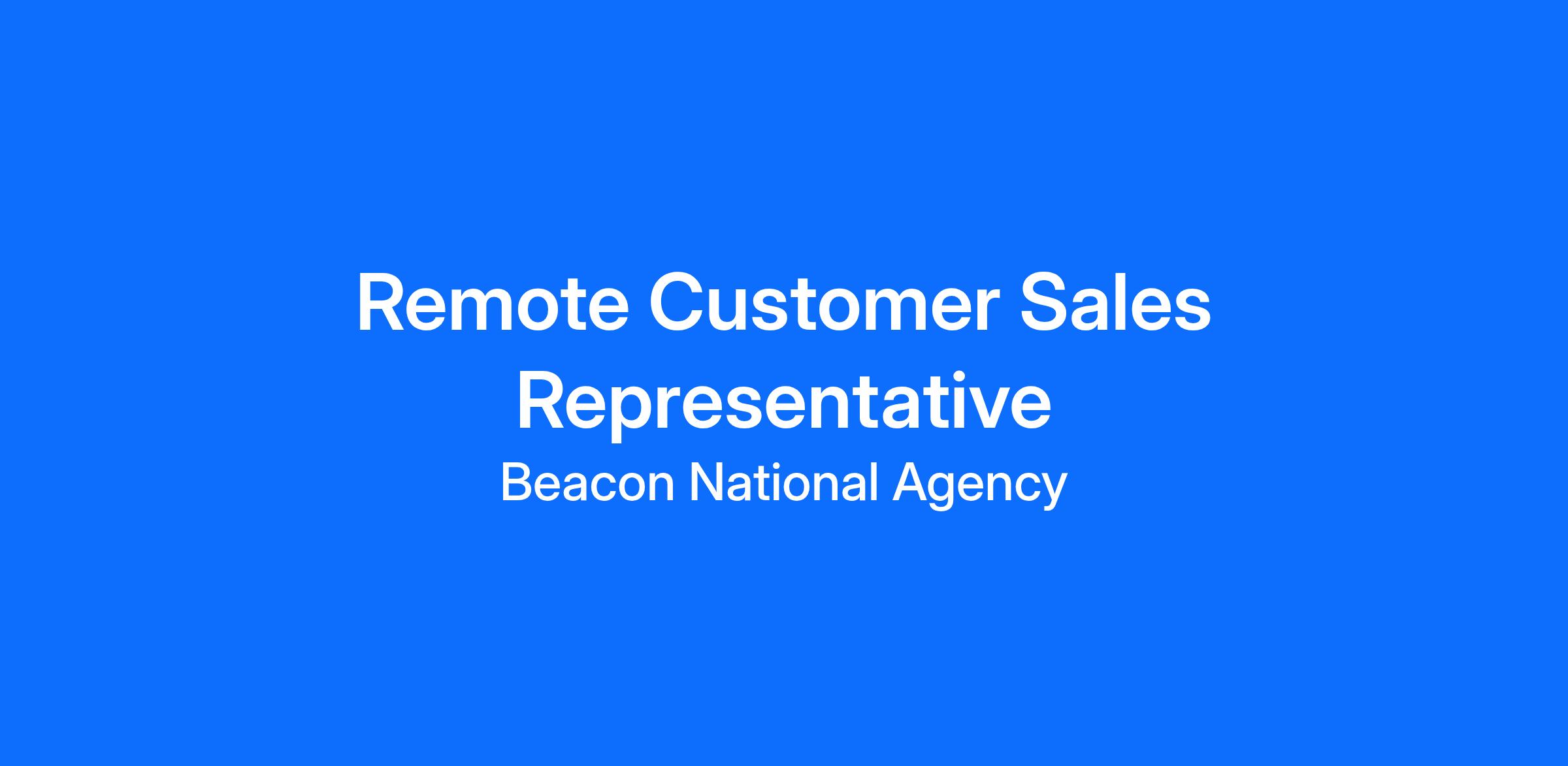 Beacon National Agency is actively seeking highly driven and charismatic individuals to join our dynamic team as Remote Customer Sales Representatives. This is an exceptional and empowering opportunity for independent professionals to harness their sales acumen and cultivate a thriving career path with a truly unlimited earning potential in this 1099 independent contractor position, all from their preferred remote workspace.