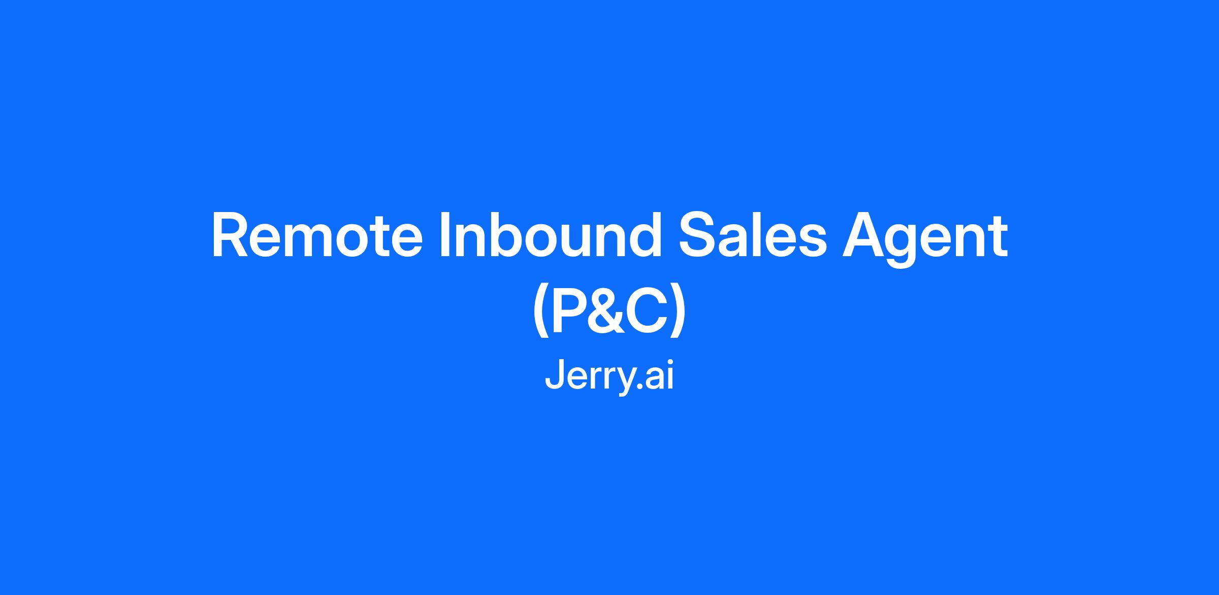 We are looking for an Insurance Sales Agent who can work weekends and evenings to join our growing team! This role is 100% remote, we provide all work equipment needed. In this role, you will be responsible for helping prospective customers understand and choose the right insurance policies for them from one of Jerry's 55+ insurance carrier partners. All of our customers come to us directly from our mobile or web app, so no outbound calls needed. If you are looking for an opportunity to make a measurable difference in the lives of millions, we'd love to hear from you!