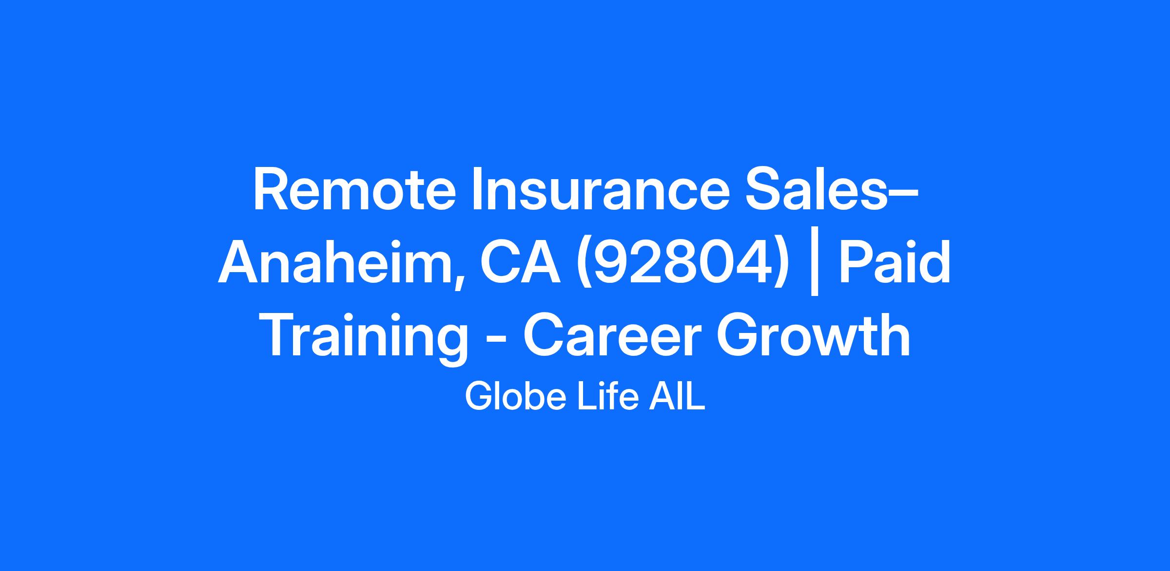 Customer Service Jobs Anaheim CA, Remote Insurance Sales 92804, Life Insurance Careers Anaheim, CA Insurance Producer Remote Jobs