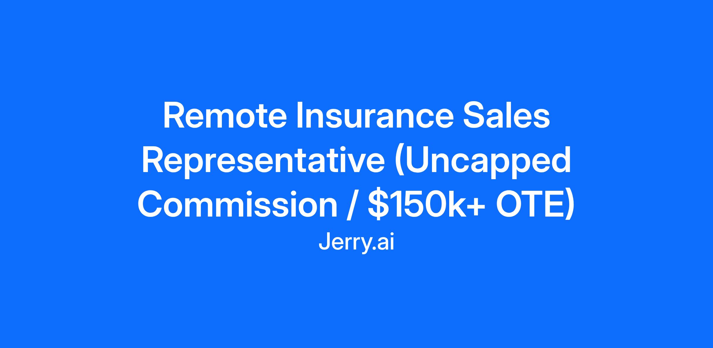 Remote Insurance Sales Representative (Uncapped Commission / $150k+ OTE)