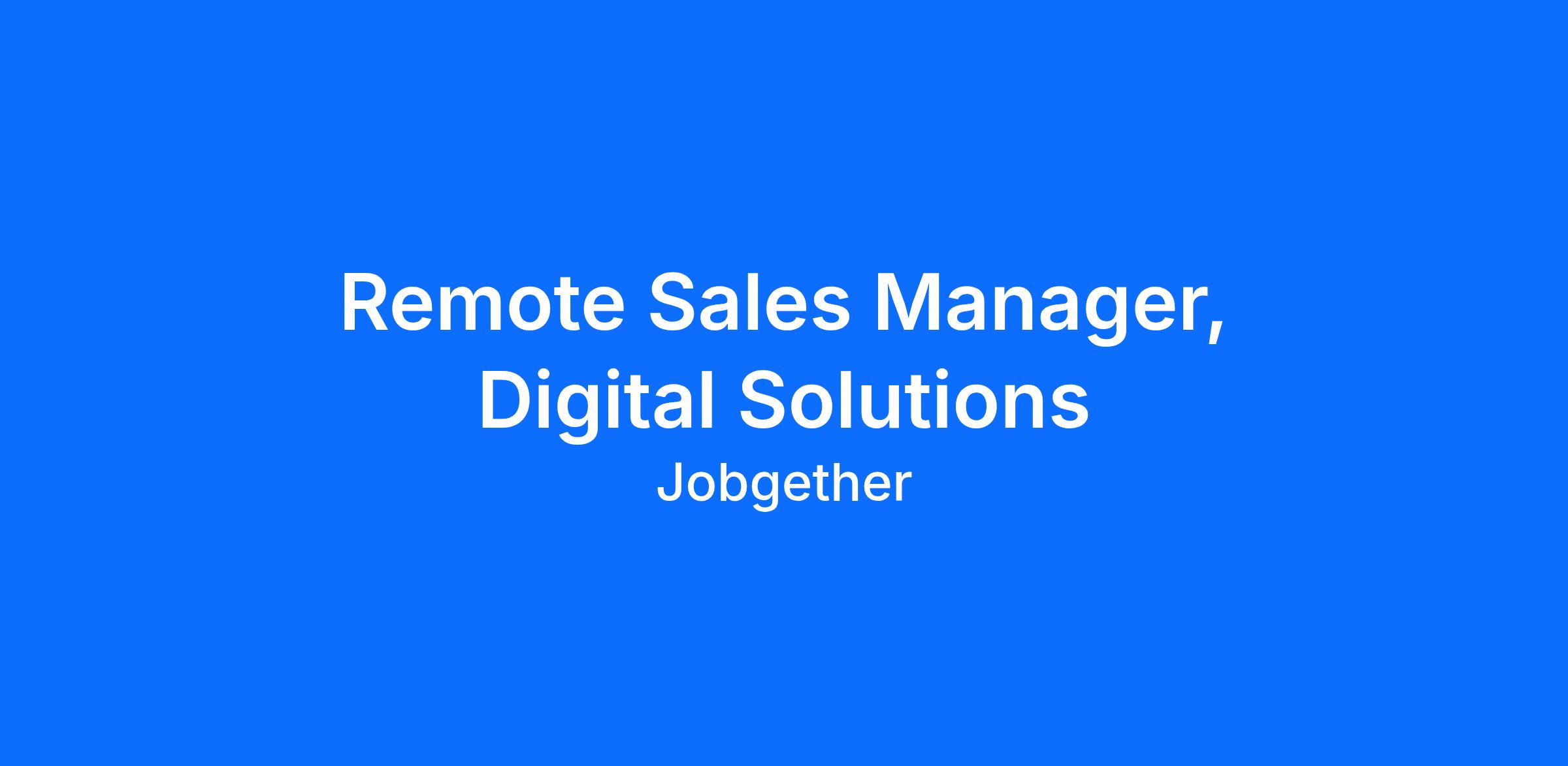 Remote Sales Manager, Digital Solutions