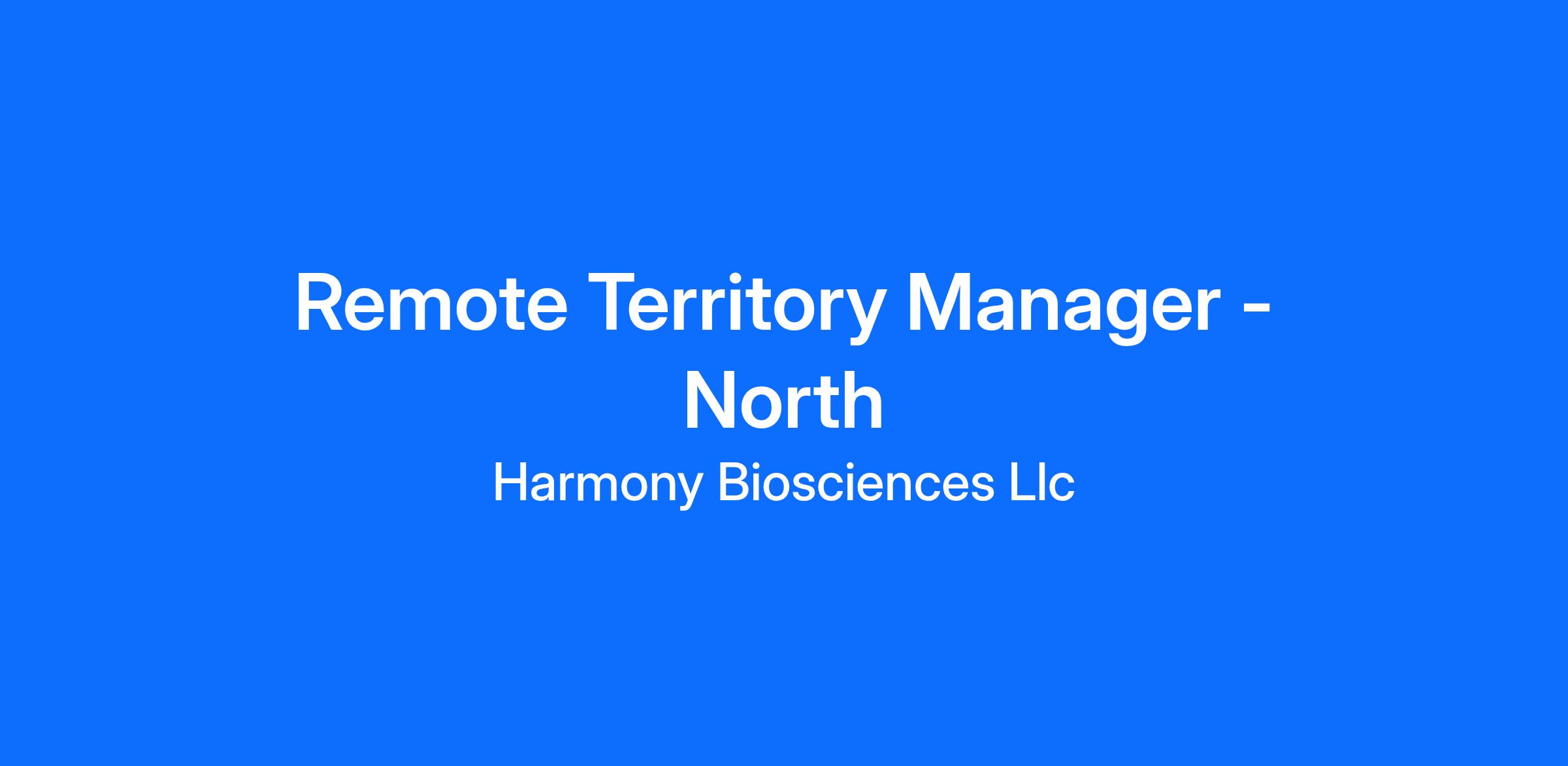 Harmony Biosciences is recruiting for a Remote Territory Manager in our North Region. In this role you will be responsible for performance across assigned geography while managing territory operations, collaborating with key accounts, providing vacancy coverage, supporting the call center, and representing company at related conferences. In this role, you will serve as a specialist of clinical and scientific information about Harmony Biosciences products to healthcare professionals and their staff.