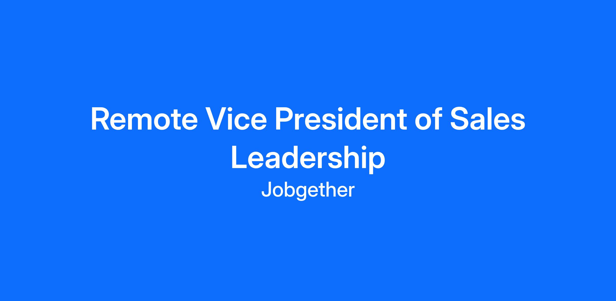 Remote Vice President of Sales Leadership