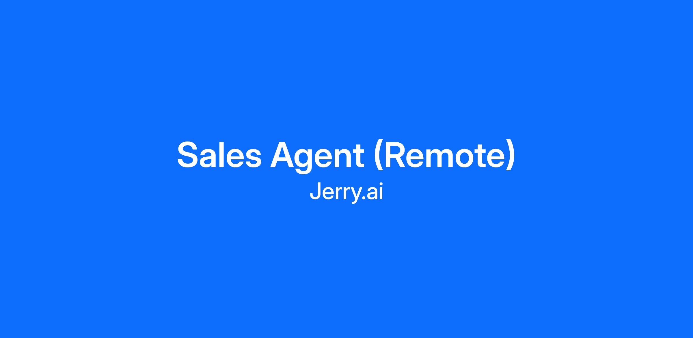 We are looking for a Remote Sales Agent to join our growing team! This role is 100% remote, we provide all work equipment needed. In this role, you will be responsible for helping prospective customers understand and choose the right insurance policies for them from one of Jerry's 55+ insurance carrier partners. All of our customers come to us directly from our mobile or web app, so no outbound calls needed. If you are looking for an opportunity to make a measurable difference in the lives of millions, we'd love to hear from you!