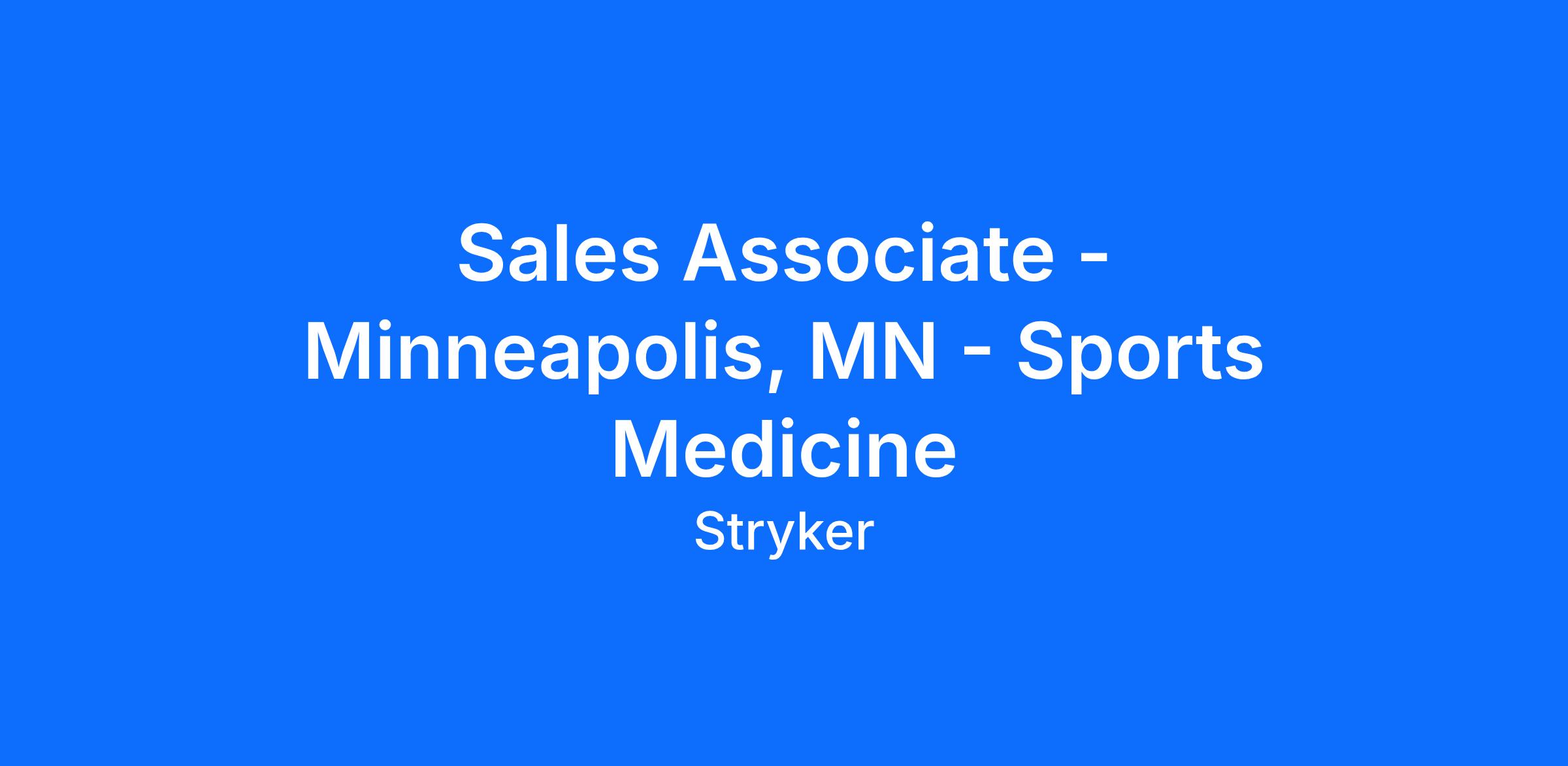 As a sales associate in our Sports Medicine specialty, you’ll be the face of Stryker products. You will be assisting Sales Representatives in the sales, promotion and marketing of Stryker products. You will educate and inform doctors, nurses, and appropriate staff personnel as to the proper use and maintenance of Stryker products, product functionality and updates, changes to product portfolio, and educational programs.
