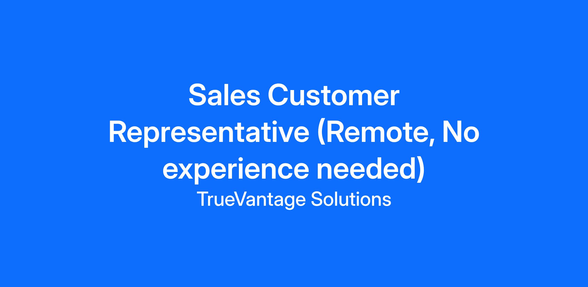 TrueVantage Solutions is redefining how individuals access smart, reliable financial solutions. We are a fast-growing organization seeking motivated Sales Customer Representatives who are driven, coachable, and ready to grow a high-earning career from home.