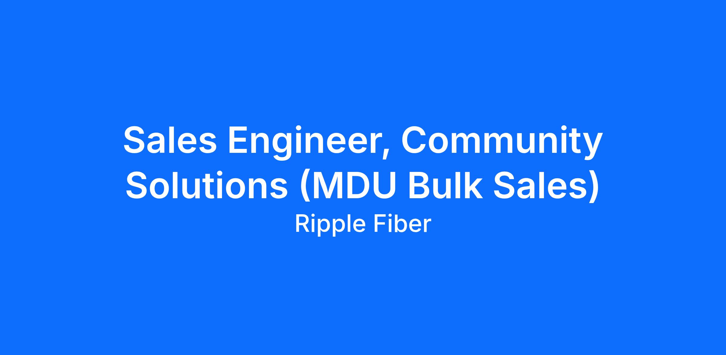 Sales Engineer, Community Solutions (MDU Bulk Sales) | Ripple Fiber