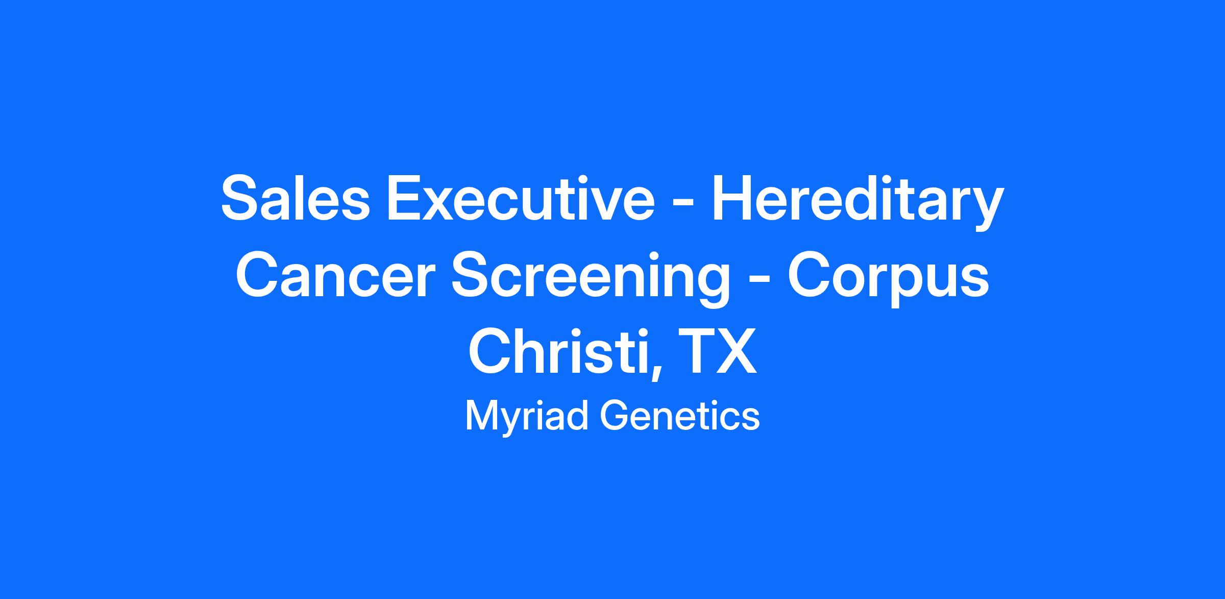 Sales Executive - Hereditary Cancer Screening - Corpus Christi, TX