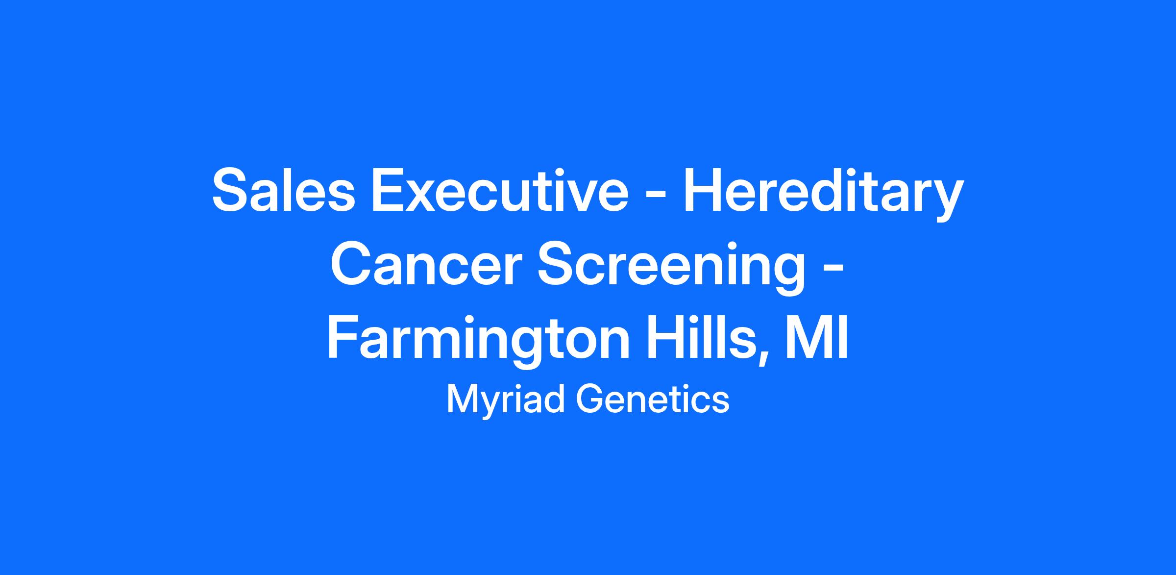 Sales Executive - Hereditary Cancer Screening - Farmington Hills, MI