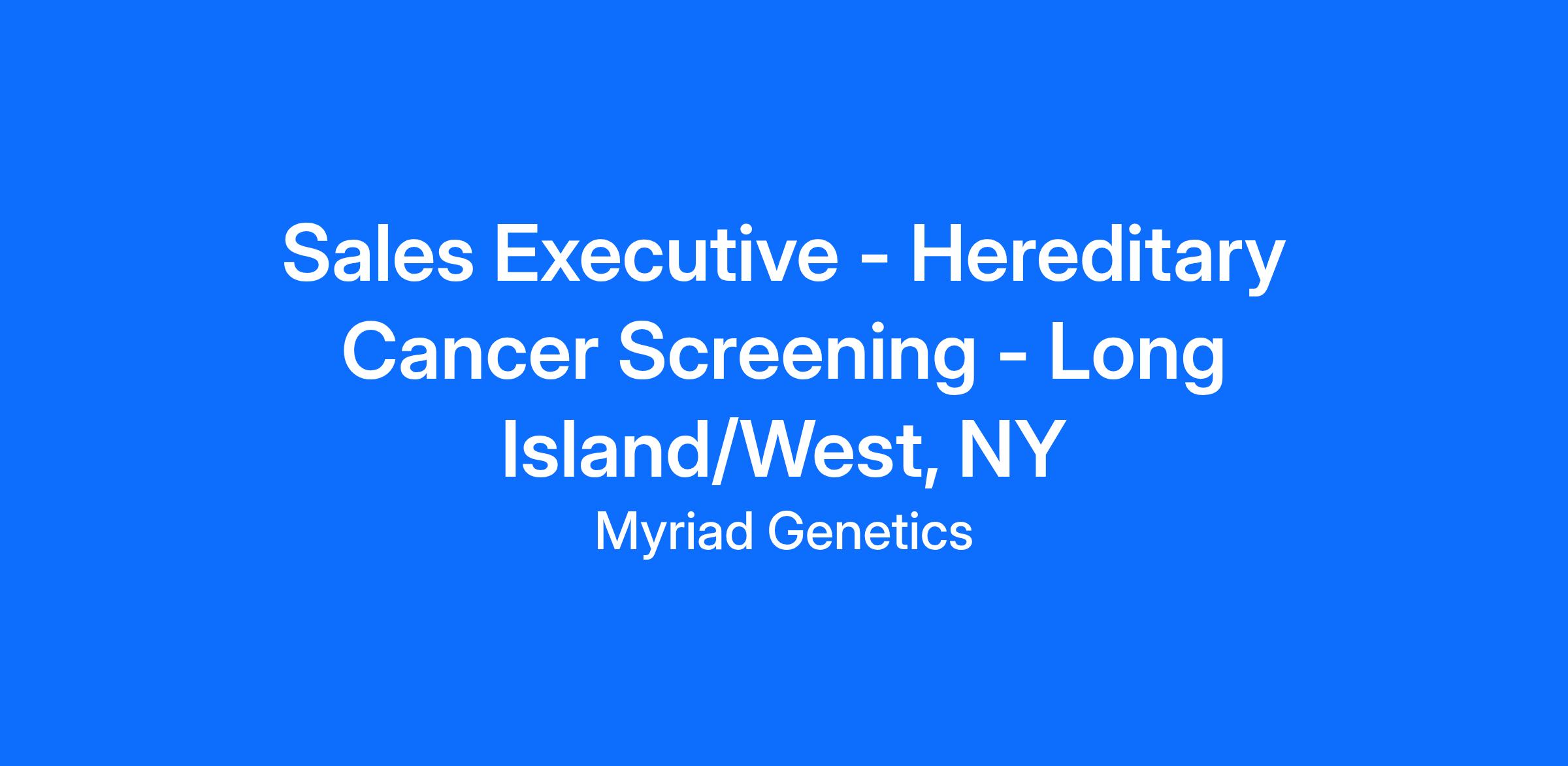 Sales Executive - Hereditary Cancer Screening - Long Island/West, NY
