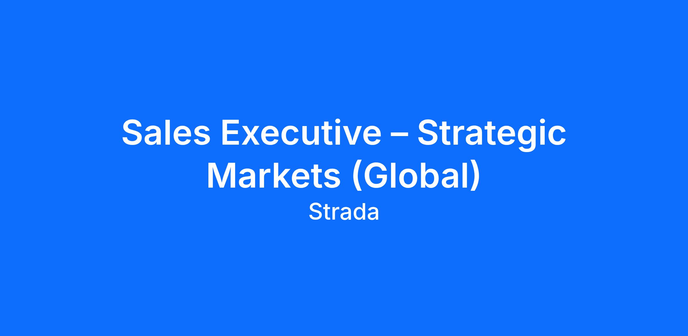 The Sales Executive for Strategic Markets (Global) is responsible for driving high-impact sales initiatives across key Global markets within the opportunity size defined for Strategic Markets as per Strada’s global commercial strategy. This role focuses on identifying and capturing strategic opportunities, building long-term client relationships, and delivering revenue growth through tailored solutions that align with global business objectives.