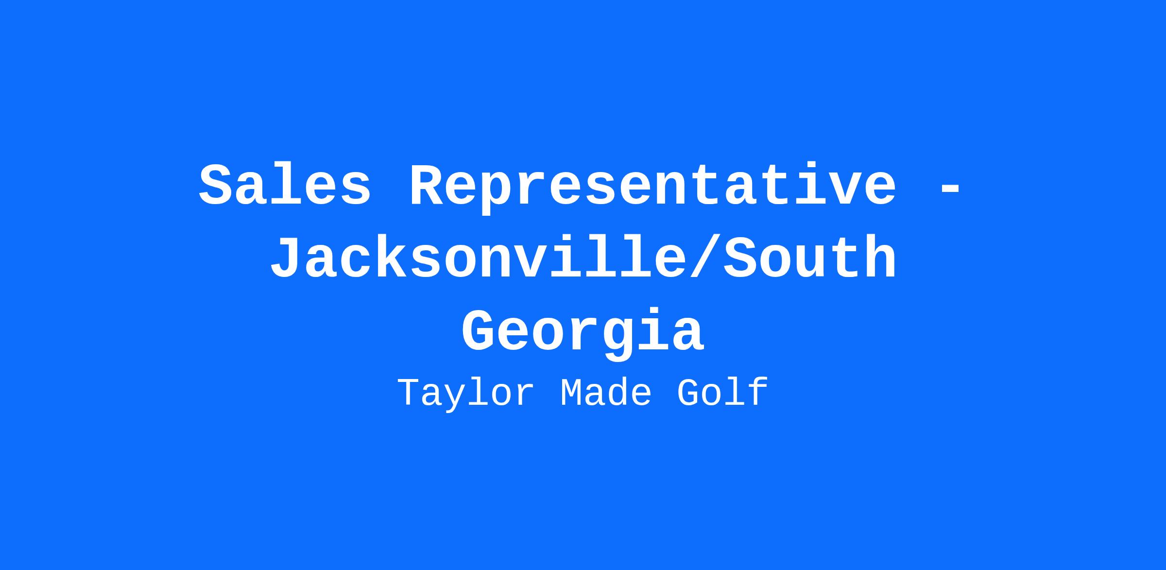 We are seeking a driven and dedicated Sales Representative in our Jacksonville and South Georgia territory. This position is responsible for the sale of TaylorMade Golf products and services in the territory by interacting with established customers and developing new prospects. Maintains personal one-on-one contact and assures customer awareness by providing expertise, knowledge, new product information and such consistent with company objectives and quality standards.