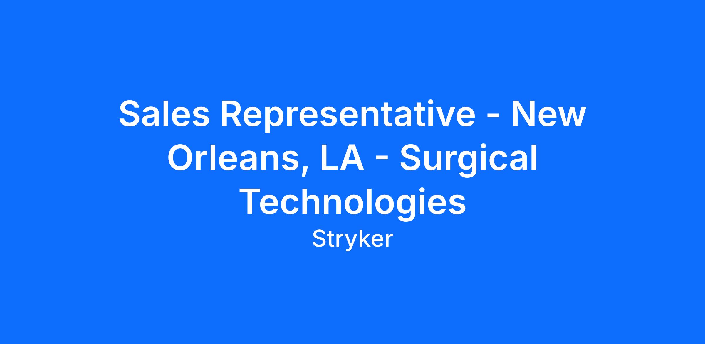 As a Surgical Technologies Sales Representative, you will strategically promote and sell Stryker Surgical Technologies products to meet our customers’ needs. You confidently conduct product evaluations in OR and office settings, persuasively demonstrating the value of our products. Systematically tracking your territory progress, you proactively communicate your wins with your Regional Manager and push yourself to exceed each goal. When onsite with clients, you use your product knowledge and quick thinking to solve product problems and inform doctors, nurses and other staff as to the proper use and maintenance of our products. You take great pride in excellent service and are prepared to assist a customer whenever the need arises. As a Sales Representative, you love living in the fast lane and find purpose in selling Stryker products that are making healthcare better.