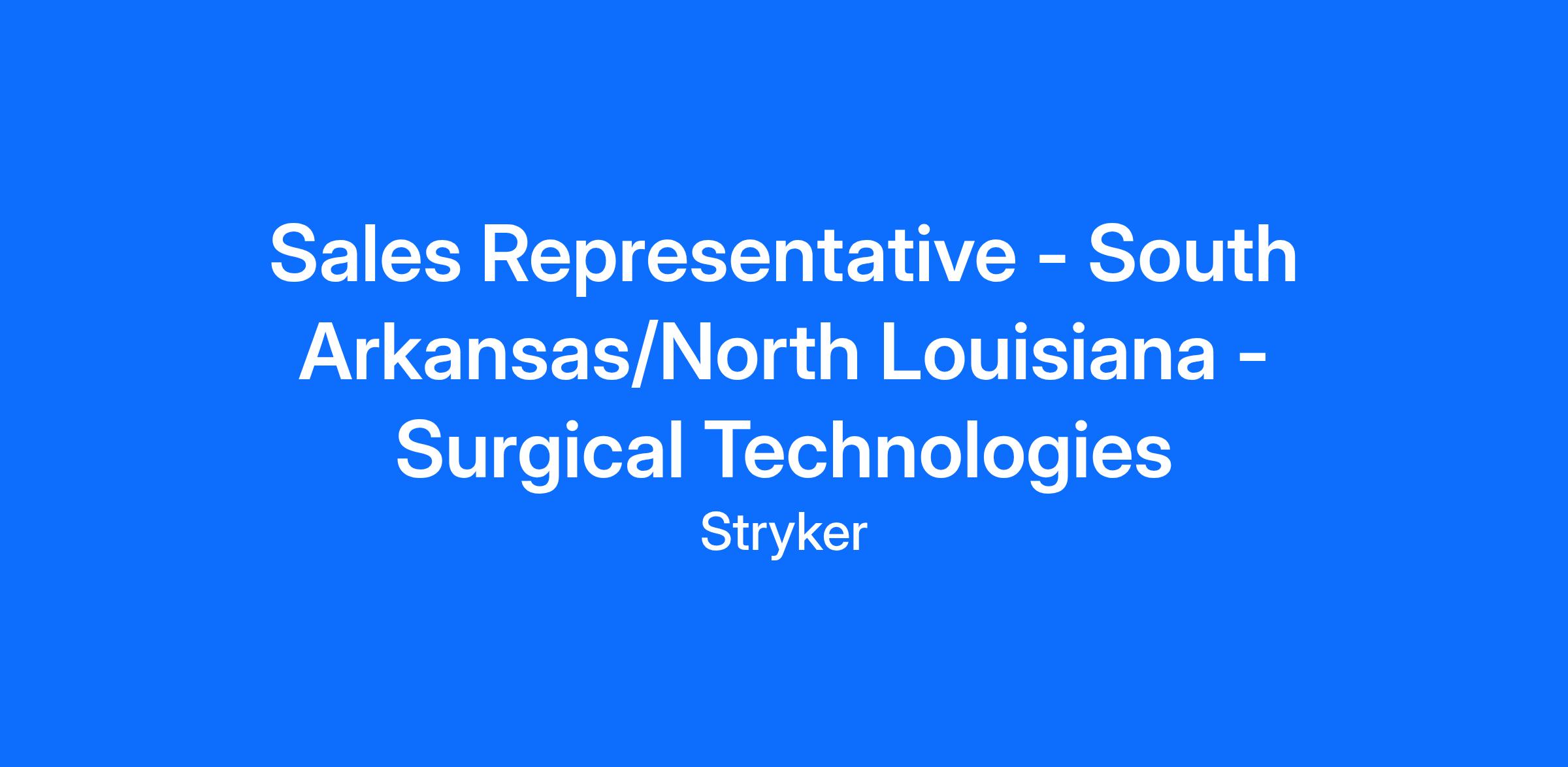As a Surgical Technologies Sales Representative, you will strategically promote and sell Stryker Surgical Technologies products to meet our customers’ needs. You confidently conduct product evaluations in OR and office settings, persuasively demonstrating the value of our products. Systematically tracking your territory progress, you proactively communicate your wins with your Regional Manager and push yourself to exceed each goal. When onsite with clients, you use your product knowledge and quick thinking to solve product problems and inform doctors, nurses and other staff as to the proper use and maintenance of our products. You take great pride in excellent service and are prepared to assist a customer whenever the need arises. As a Sales Representative, you love living in the fast lane and find purpose in selling Stryker products that are making healthcare better.