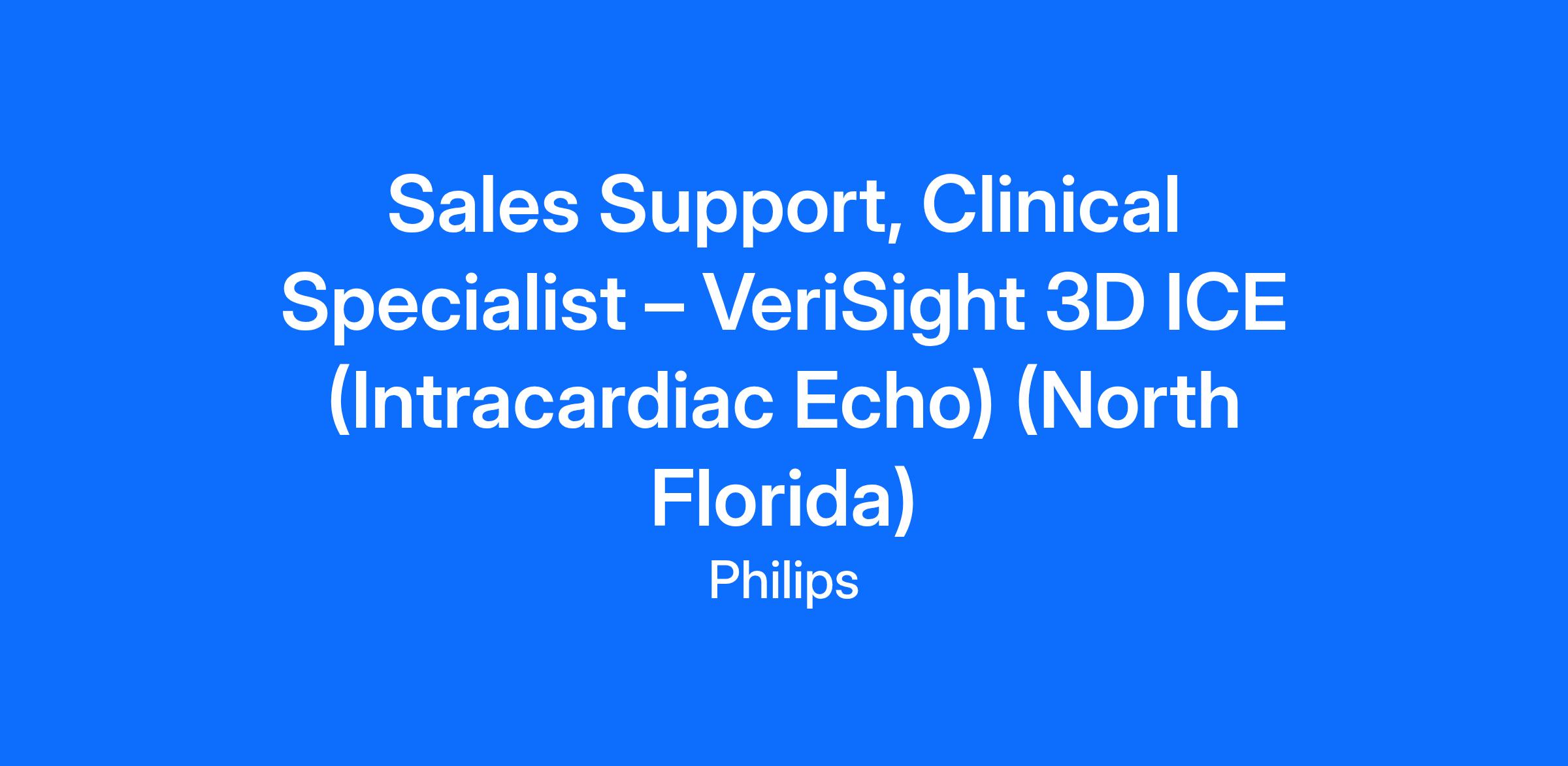 The VeriSight Intracardiac Devices Clinical Specialist is accountable for building, maintaining, and providing outstanding technical and clinical product support, systems support, and sustained education to health care providers (HCP) and allied health professionals (AHP) around the VeriSight platform. They directly partner with the VeriSight Regional & Territory Managers, along with Philips collaboration efforts between our Ultrasound, Image Guided Therapy Systems & Devices, Training & Education, Field Service Engineers and Field Management business segments to ensure alignment and coordination of activities that meet defined VeriSight business objectives.