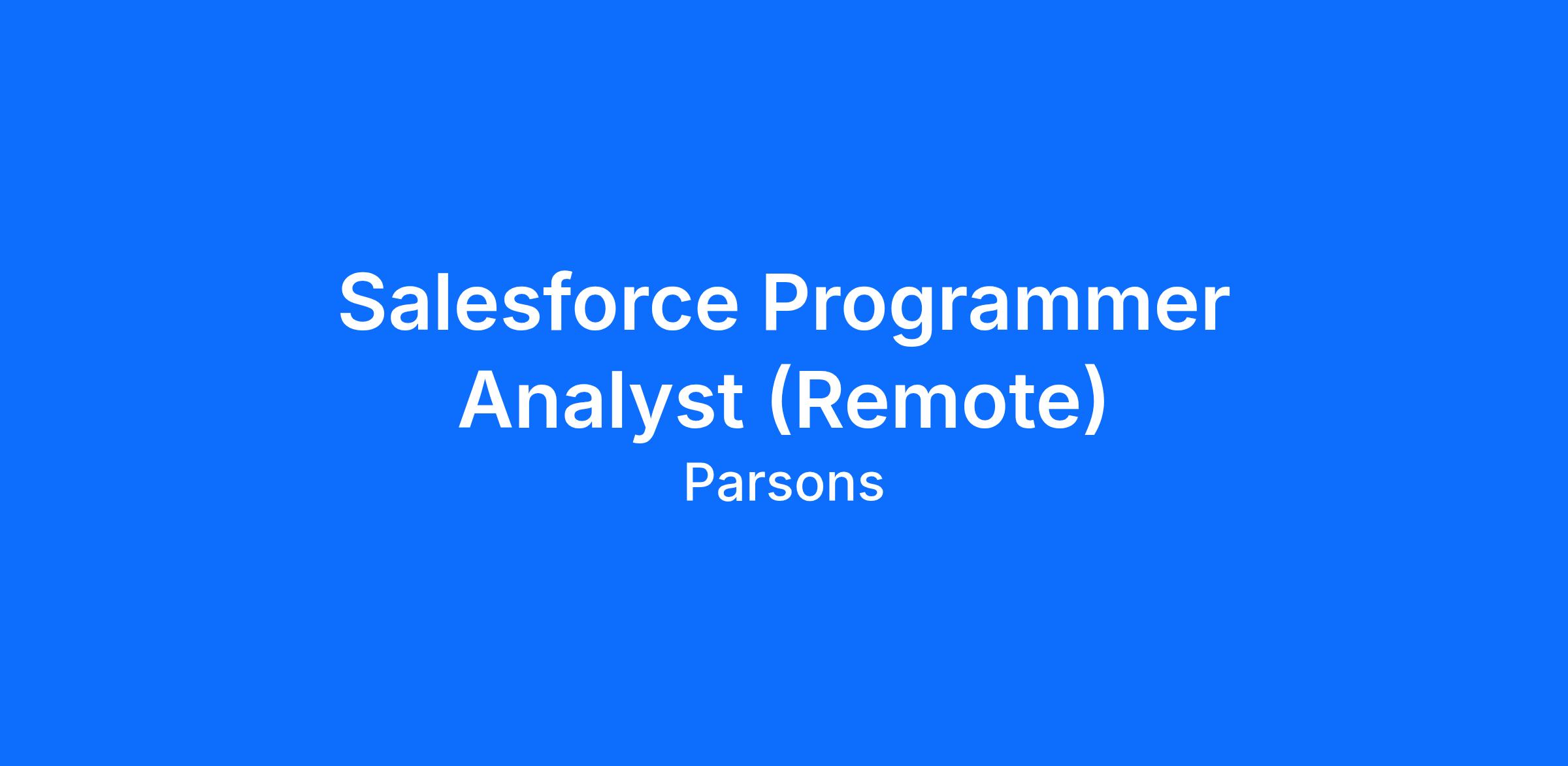Parsons is looking for an amazingly talented Salesforce Programmer Analyst to join our team! In this role you will support the full lifecycle of Salesforce development initiatives. The position involves gathering and analyzing requirements, designing logical solutions, writing and testing code, configuring platform features, integrating with external systems, and providing ongoing support and optimization to ensure robust, user-friendly Service Cloud capabilities aligned with evolving business demands.